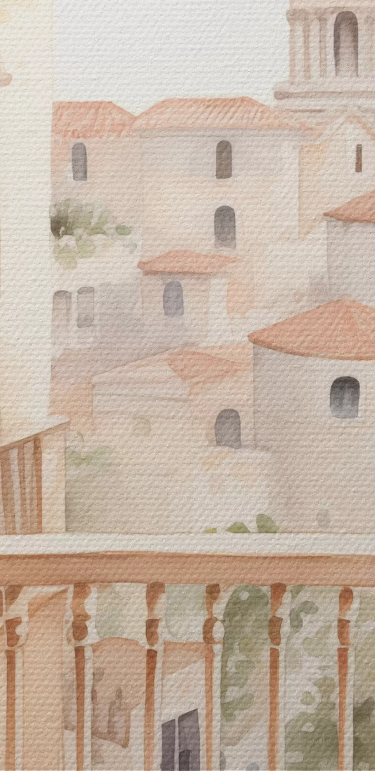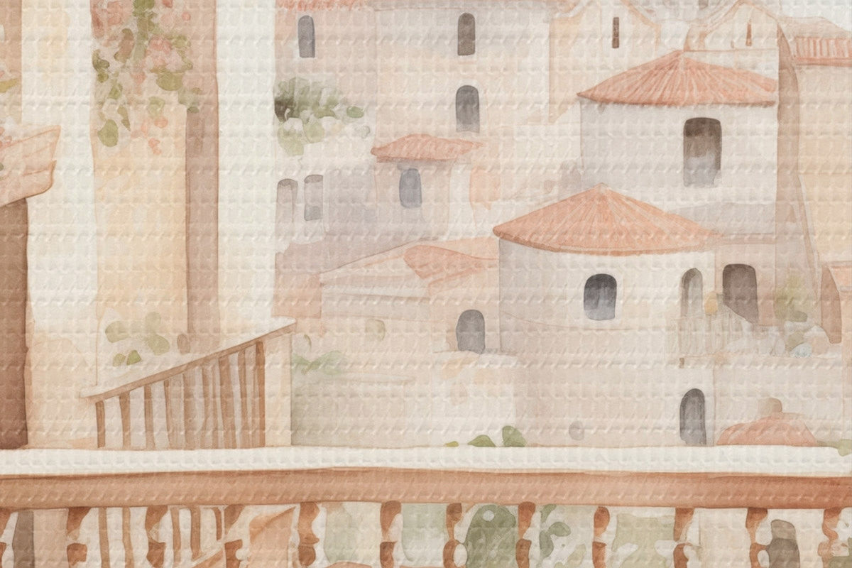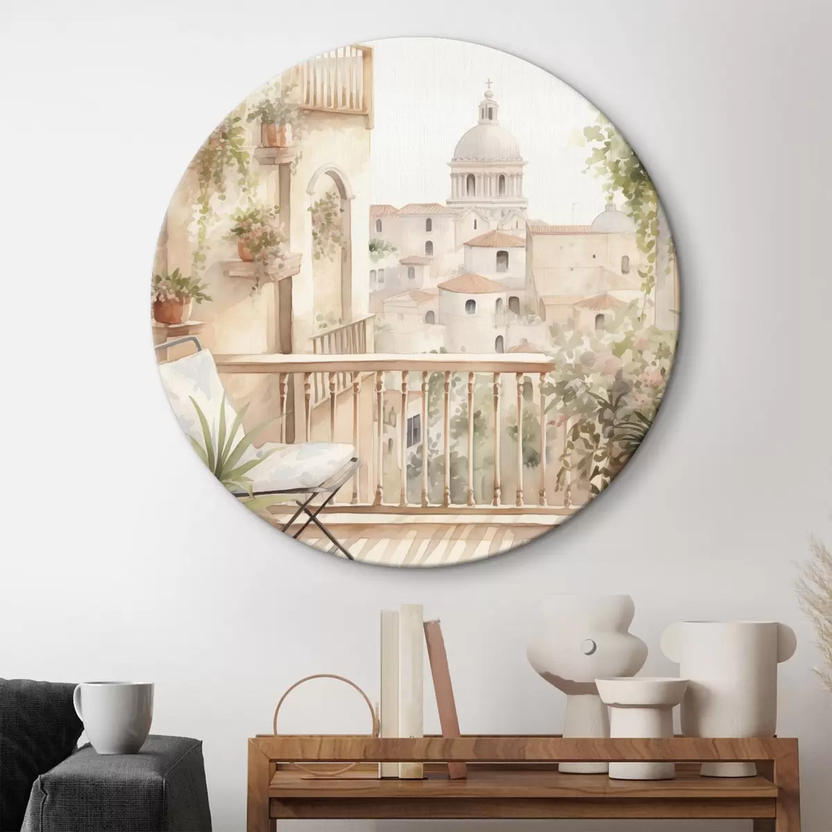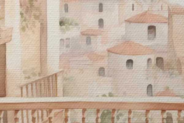 Pilt Esteetiline suvine rõdu, Hispaania, vana arhitektuur, blomming, akvarellstiil Nr r43180