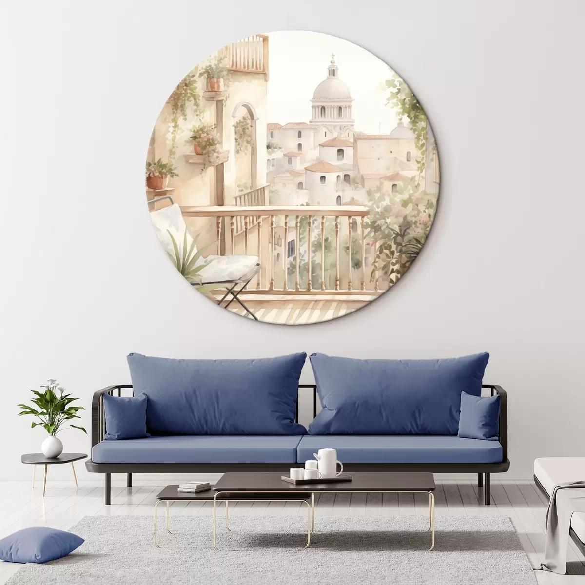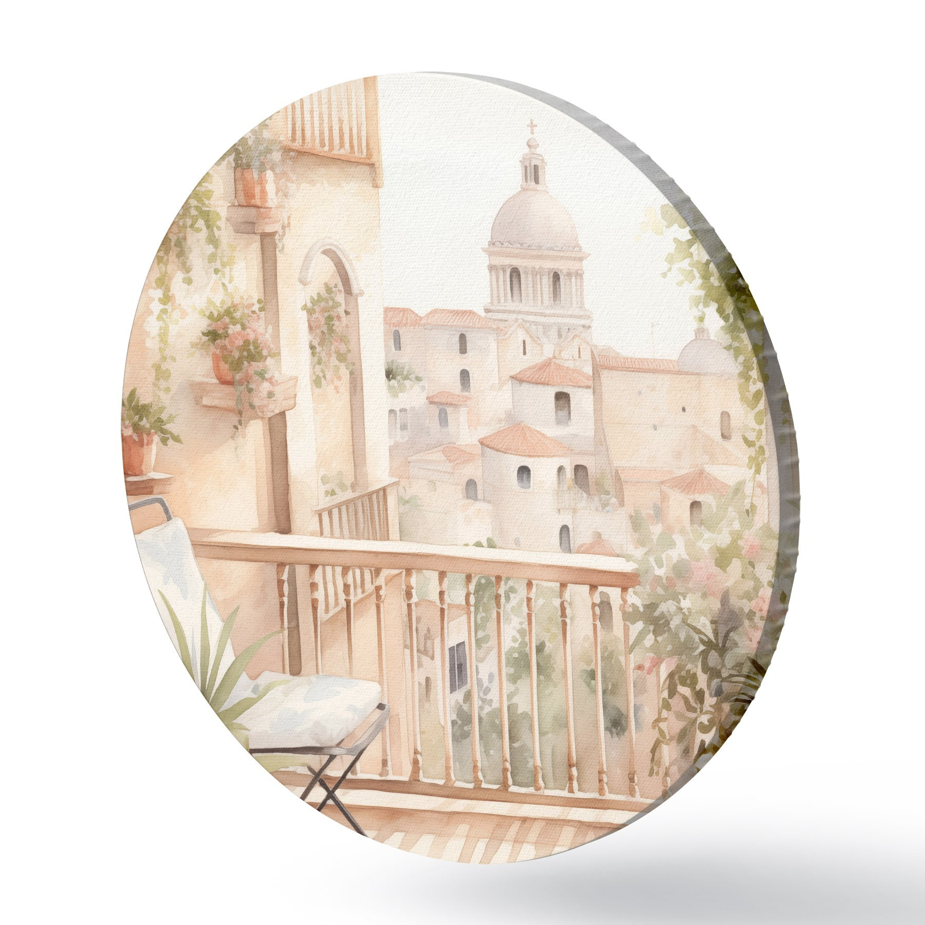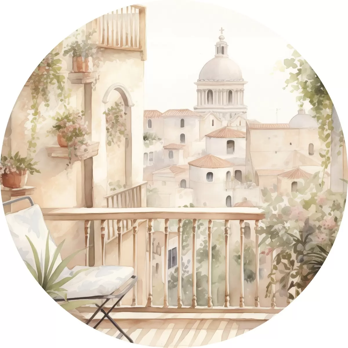 Pilt Esteetiline suvine rõdu, Hispaania, vana arhitektuur, blomming, akvarellstiil Nr r43180