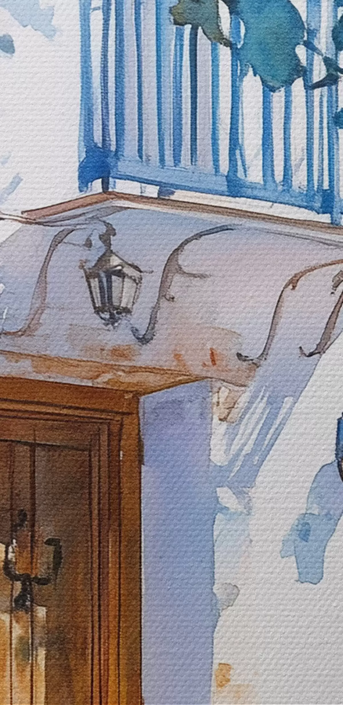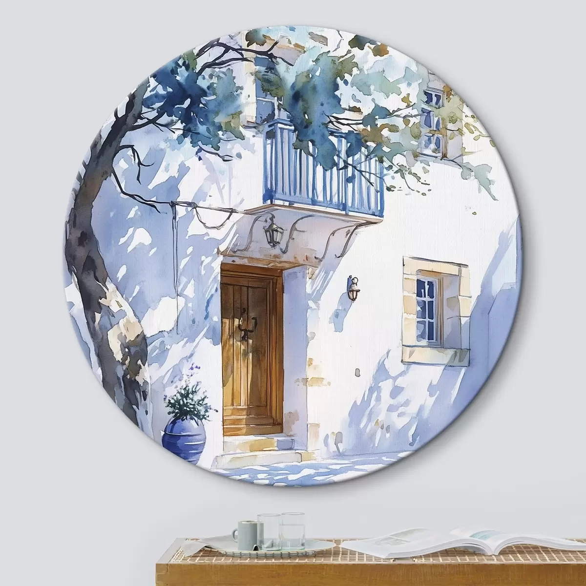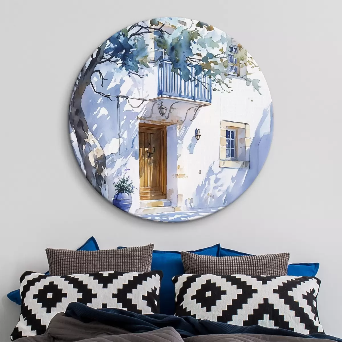 Pilt Akvarellstiil, kreeka maja, õitsev puu, arhitektuur Nr r43182