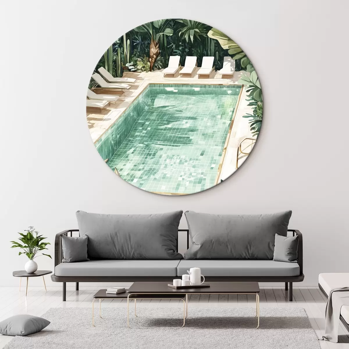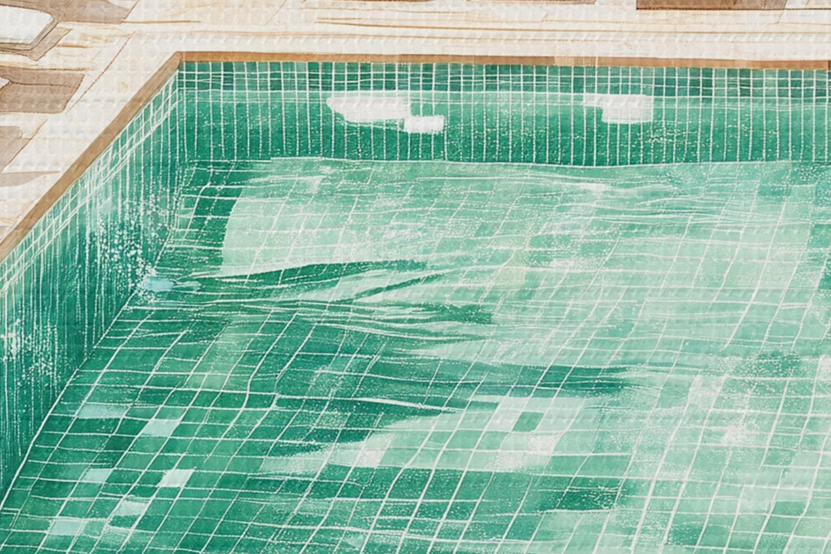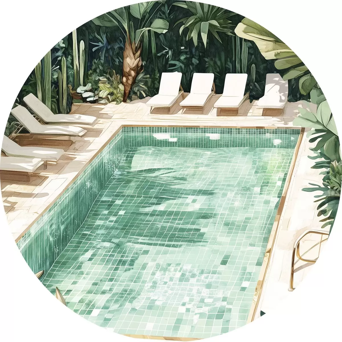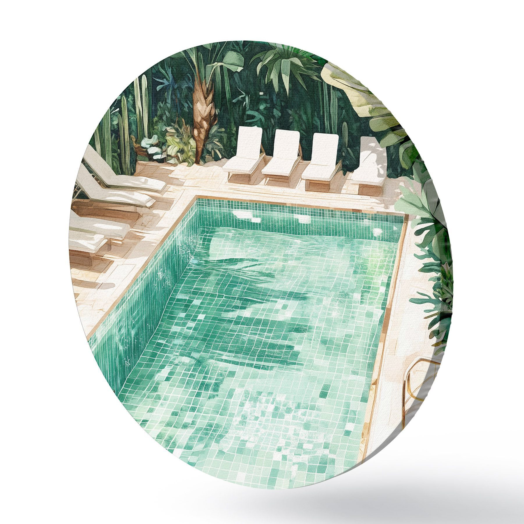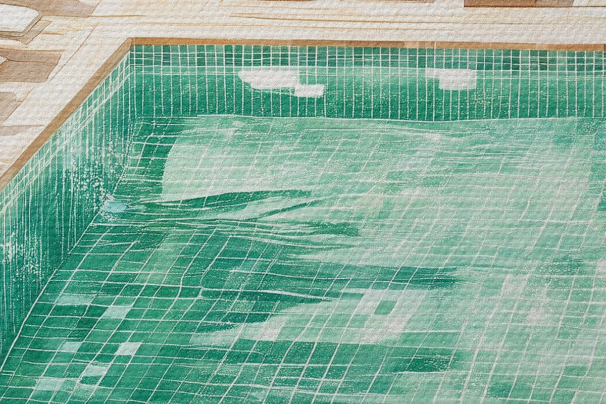 Pilt Suvine bassein rohelises aias, vintage stiilis, akvarell Nr r43189