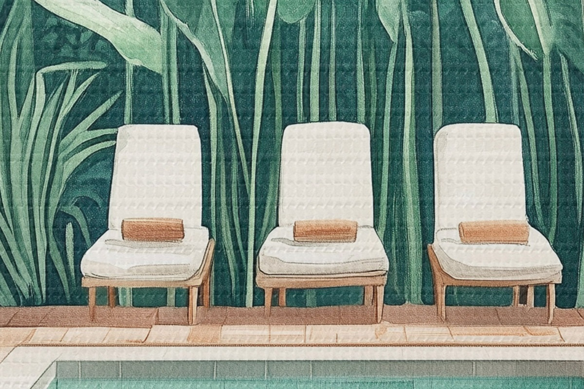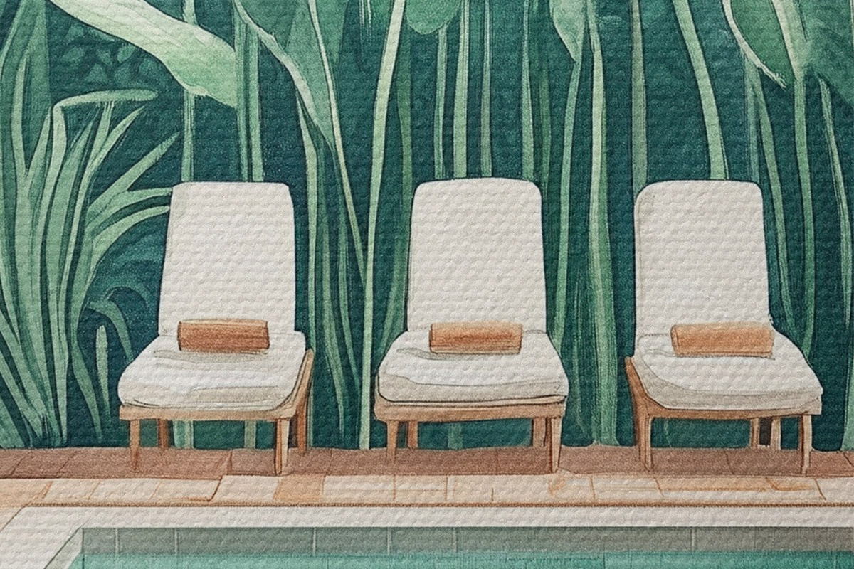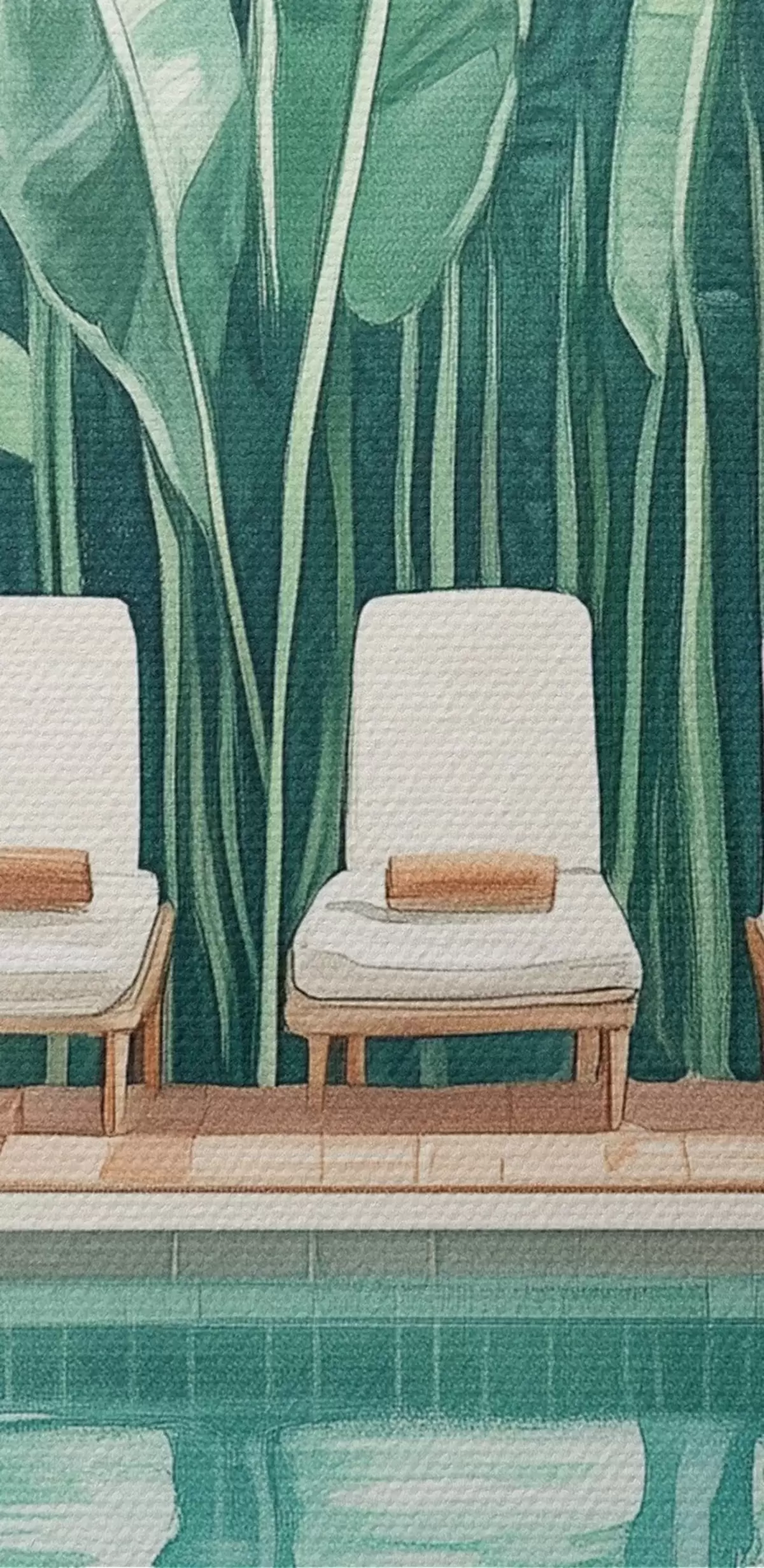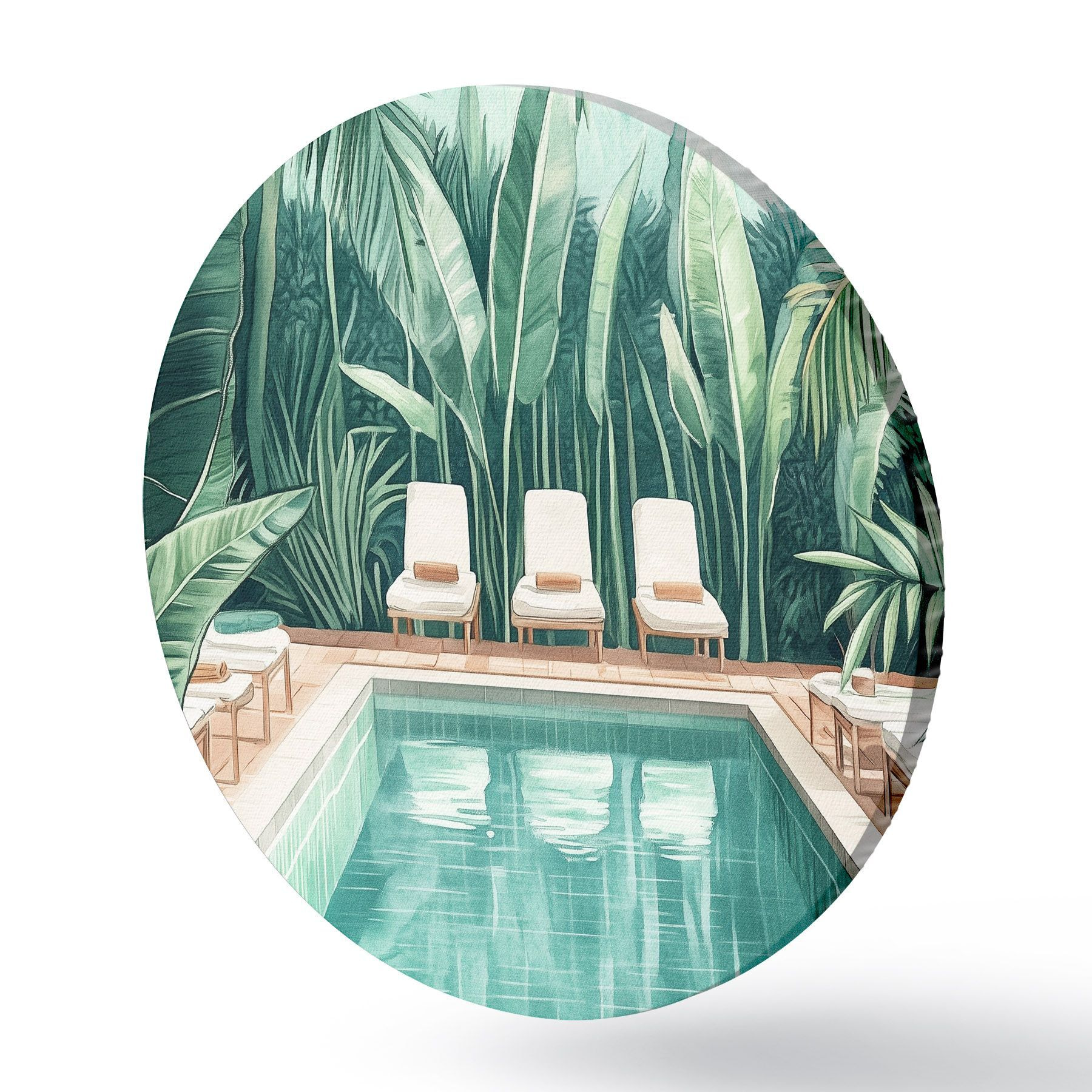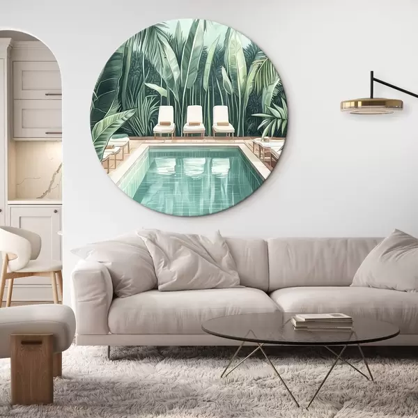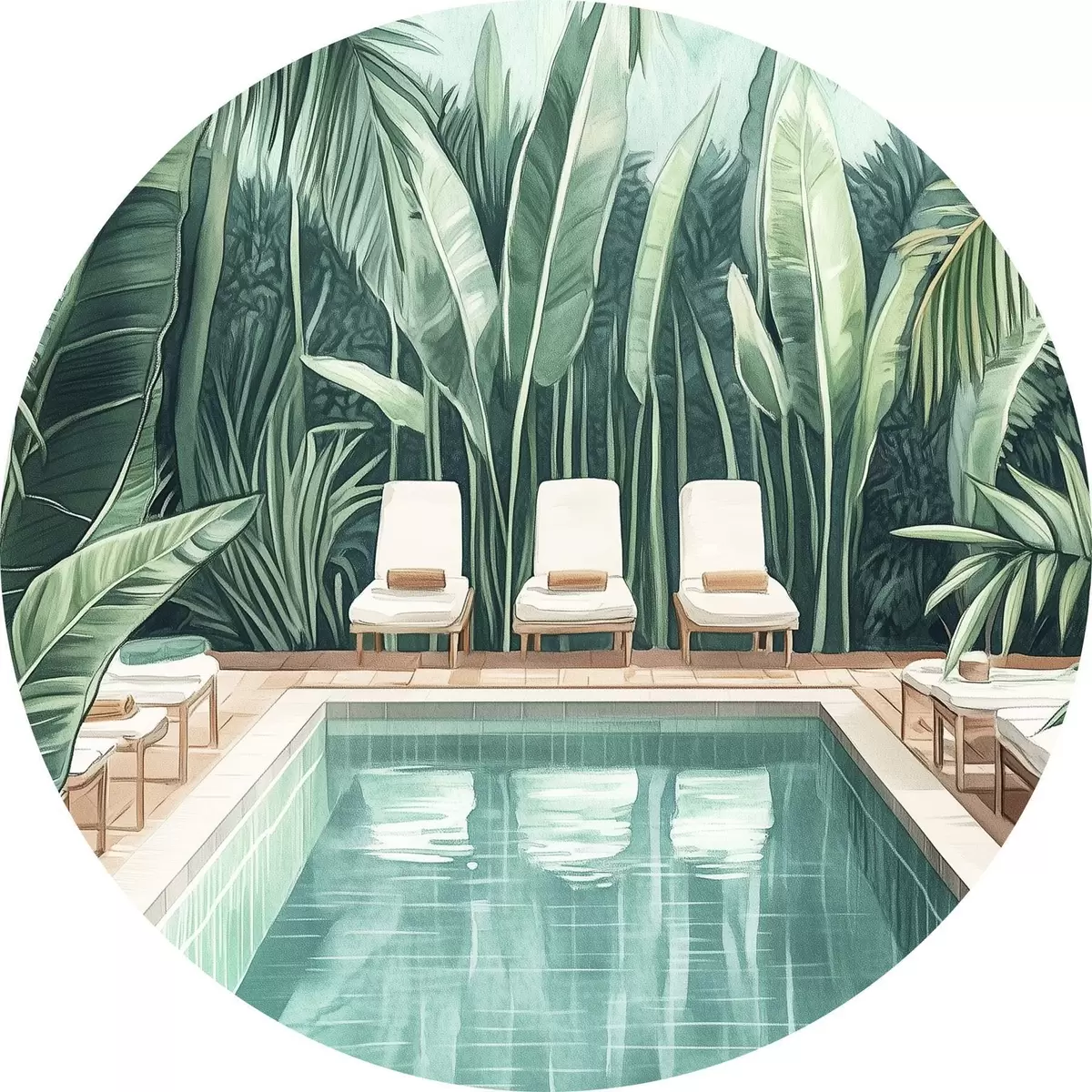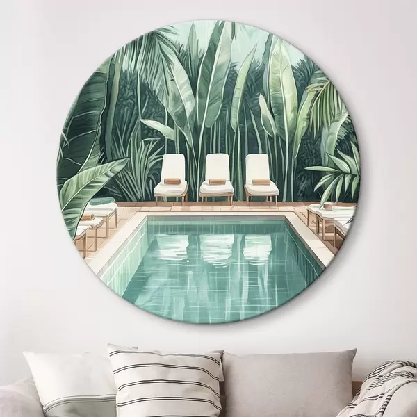 Pilt Esteetiline suvine bassein troopilises aias, akvarellistiilis Nr r43192