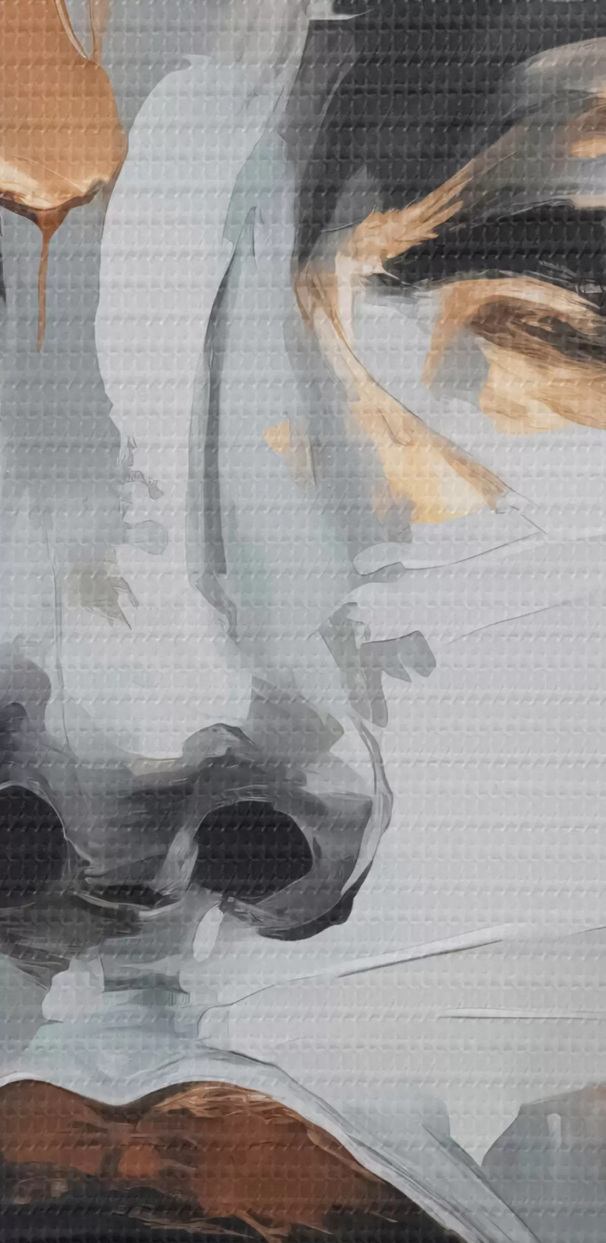 Selle lõuendi peenike niidipunus meenutab professionaalse kunstniku lõuendi pinda.