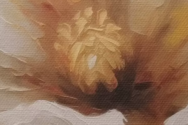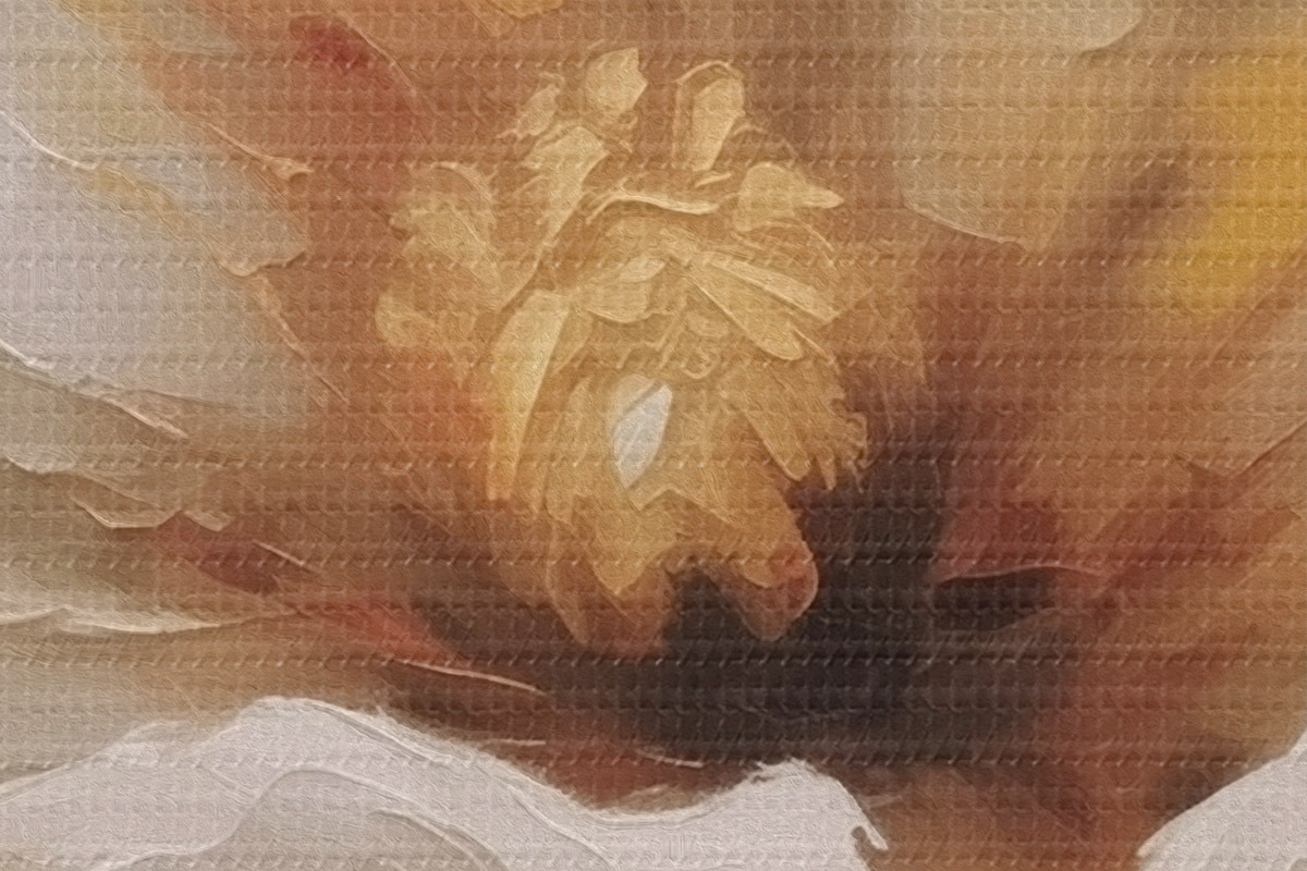 Selle lõuendi peenike niidipunus meenutab professionaalse kunstniku lõuendi pinda.
