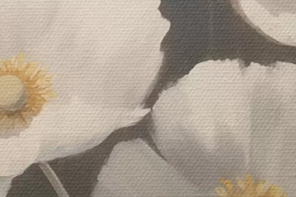 Selle lõuendi peenike niidipunus meenutab professionaalse kunstniku lõuendi pinda.