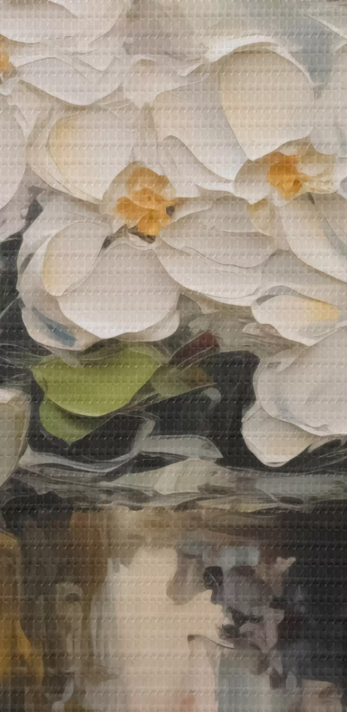 Selle lõuendi peenike niidipunus meenutab professionaalse kunstniku lõuendi pinda.