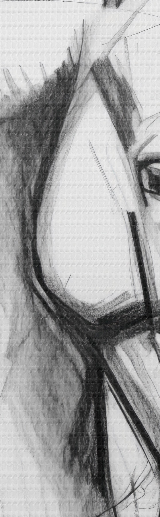 Selle lõuendi peenike niidipunus meenutab professionaalse kunstniku lõuendi pinda.