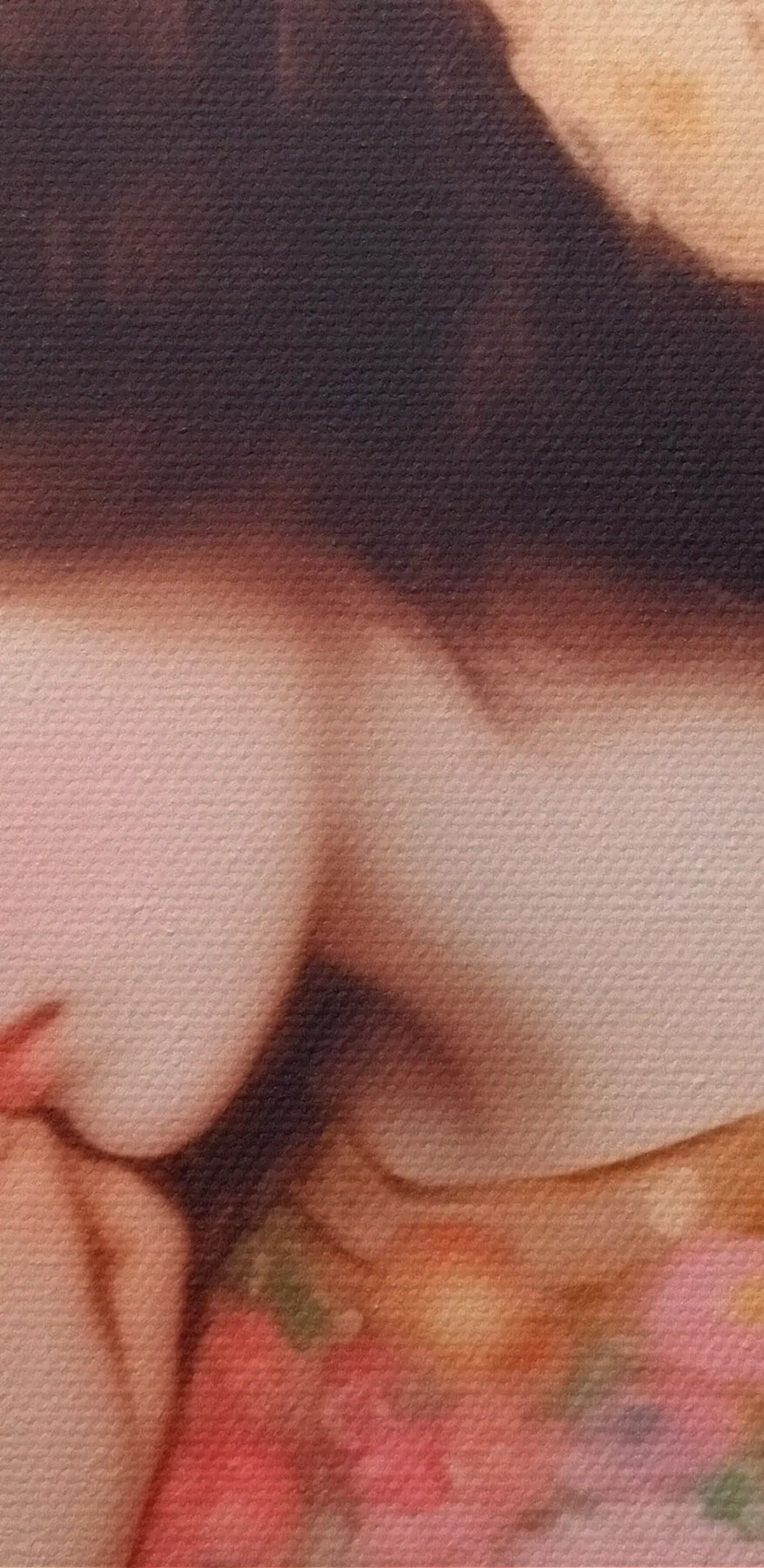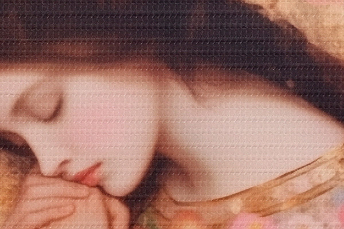 Selle lõuendi peenike niidipunus meenutab professionaalse kunstniku lõuendi pinda.