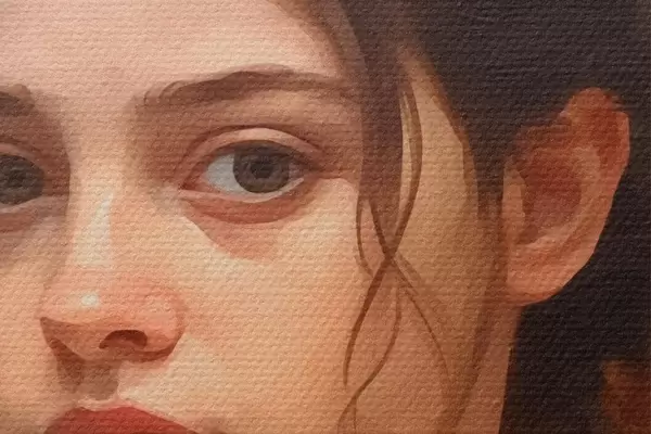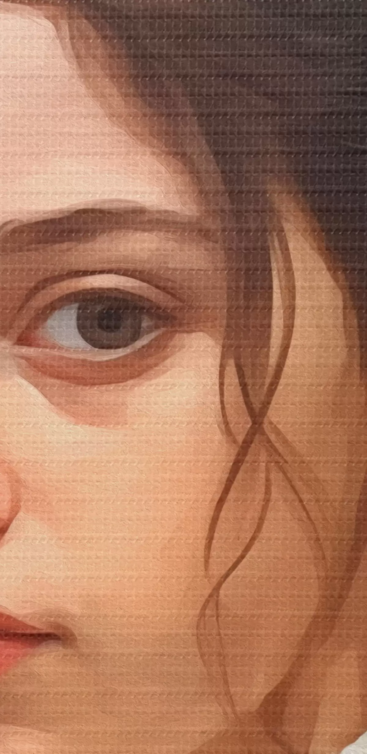 Selle lõuendi peenike niidipunus meenutab professionaalse kunstniku lõuendi pinda.
