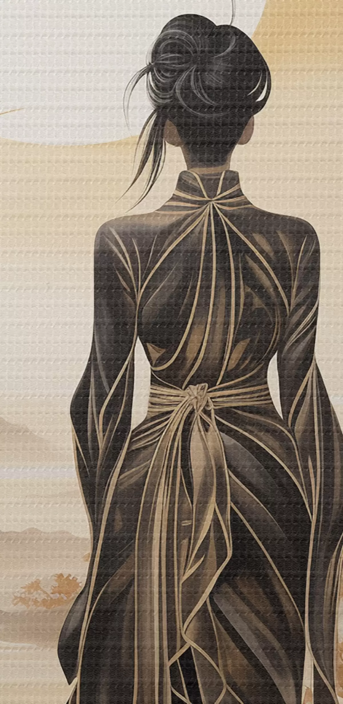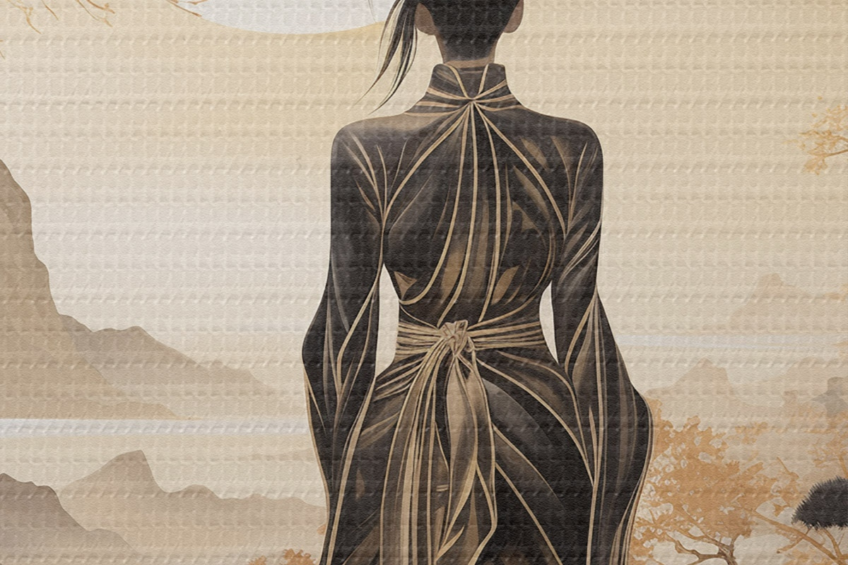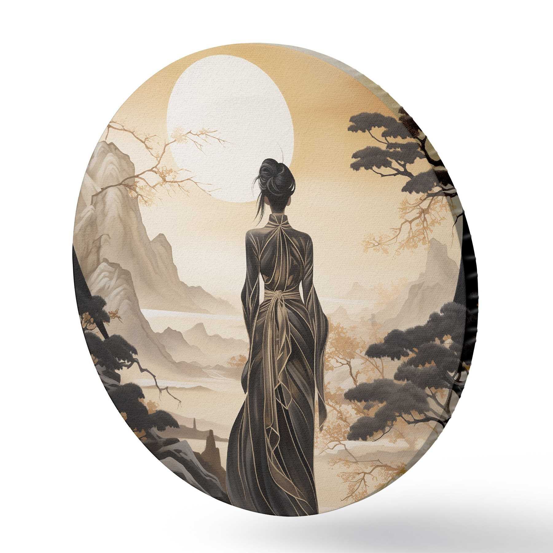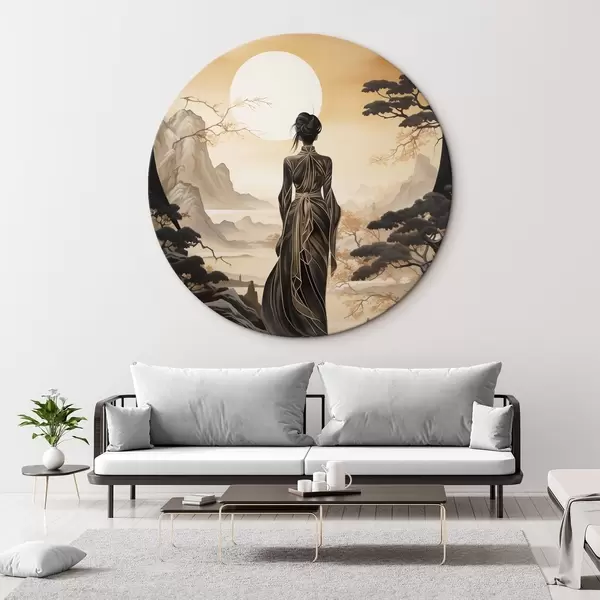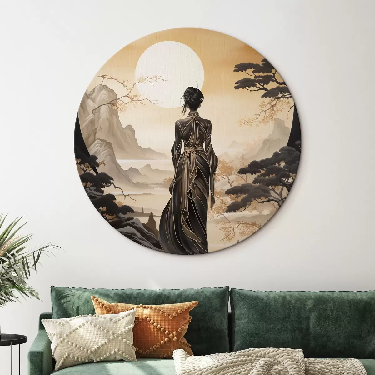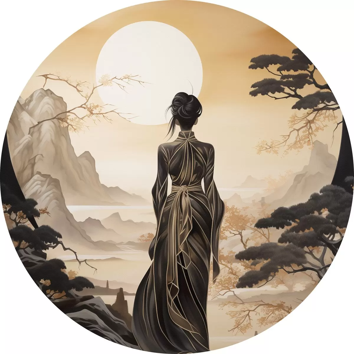 Pilt Inimesed, Jaapan, tüdruk päikeseloojangul sakura ja mägede taustal Nr r43256