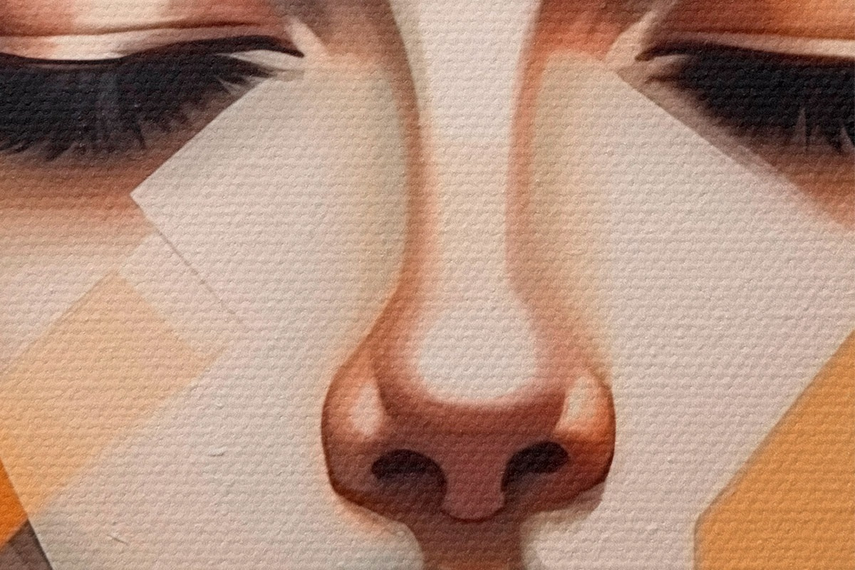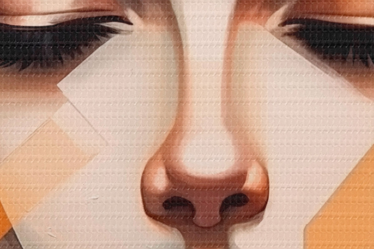 Selle lõuendi peenike niidipunus meenutab professionaalse kunstniku lõuendi pinda.