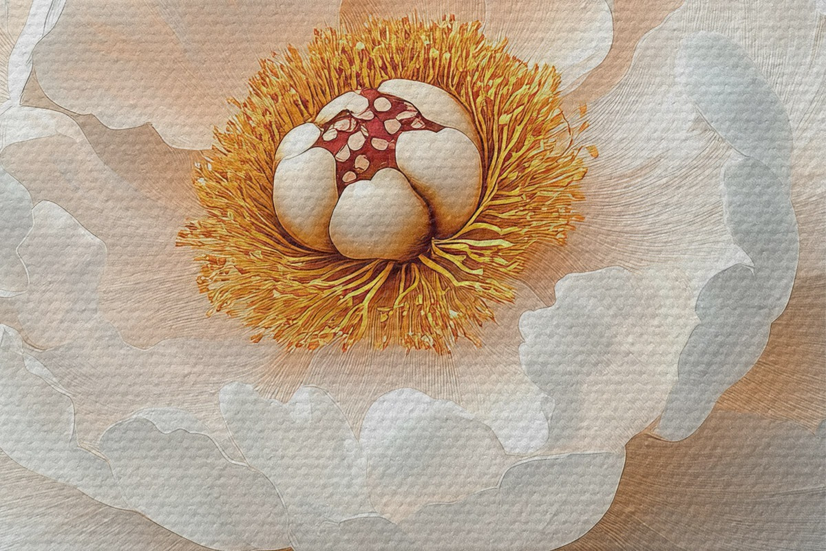 Pilt Suurepärane pioon lehtede ja väikeste pojengide taustal Nr r43315