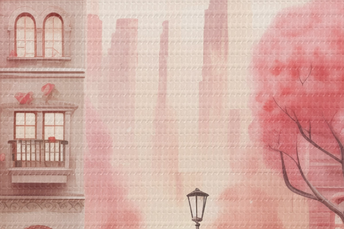 Pilt Romantiline roosa tänav südamega Nr r43324