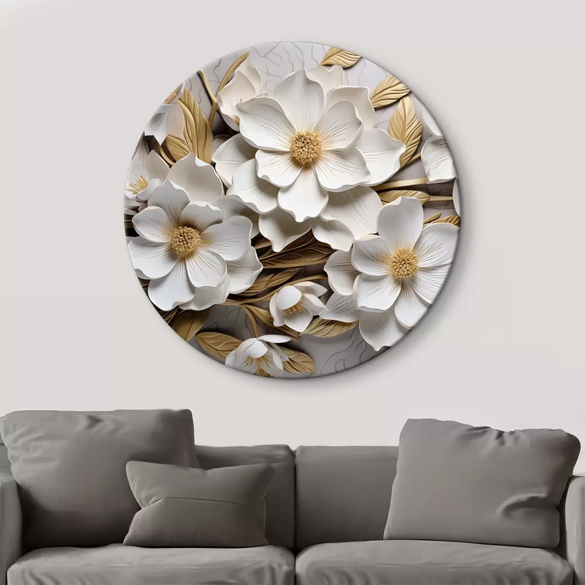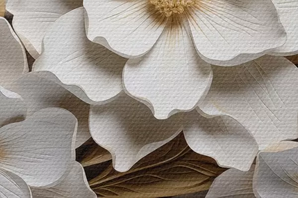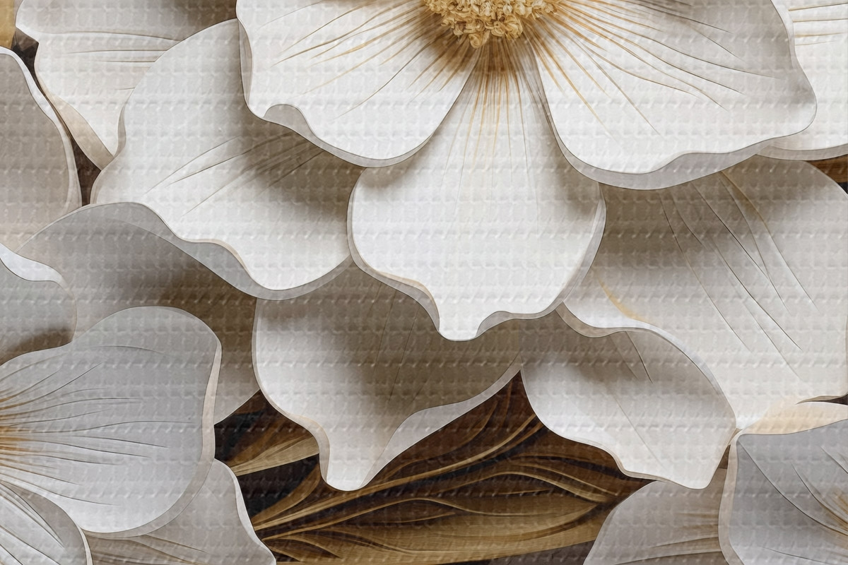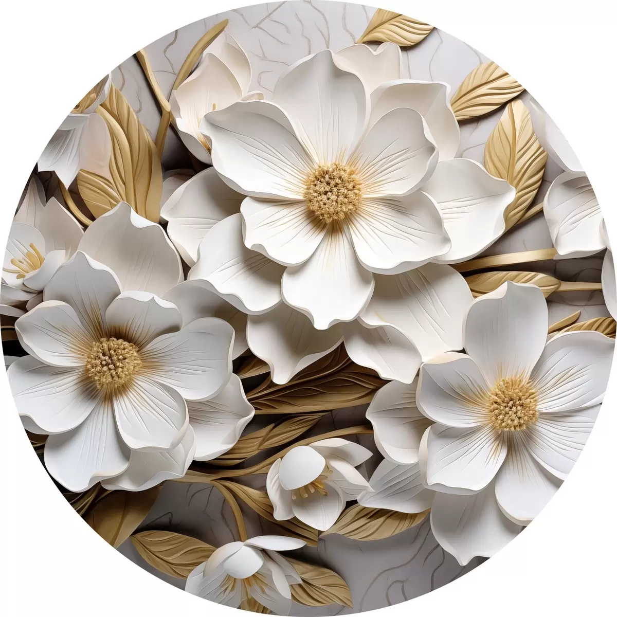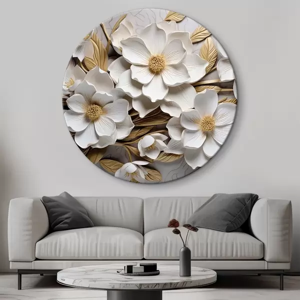 Pilt Valged lilled reljeefse fresko stiilis kollaste aktsentidega Nr r43330
