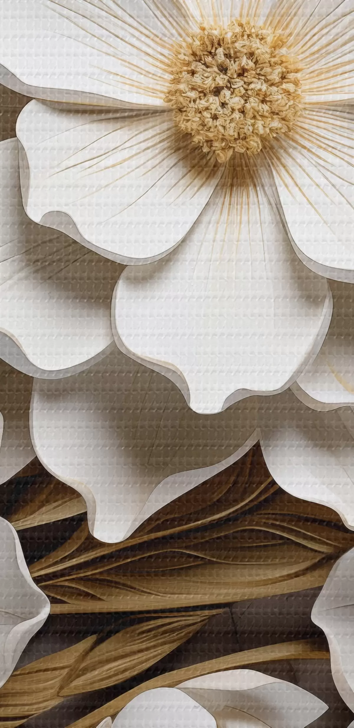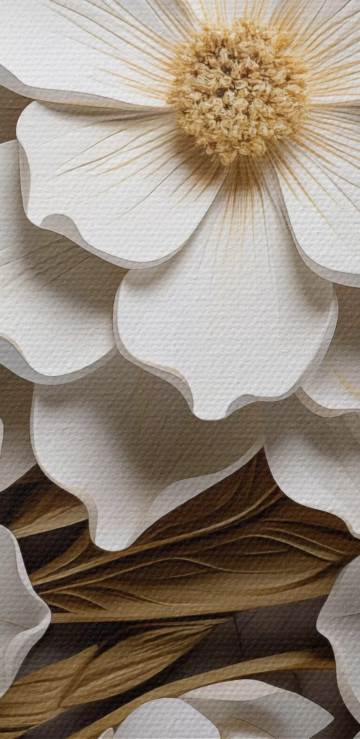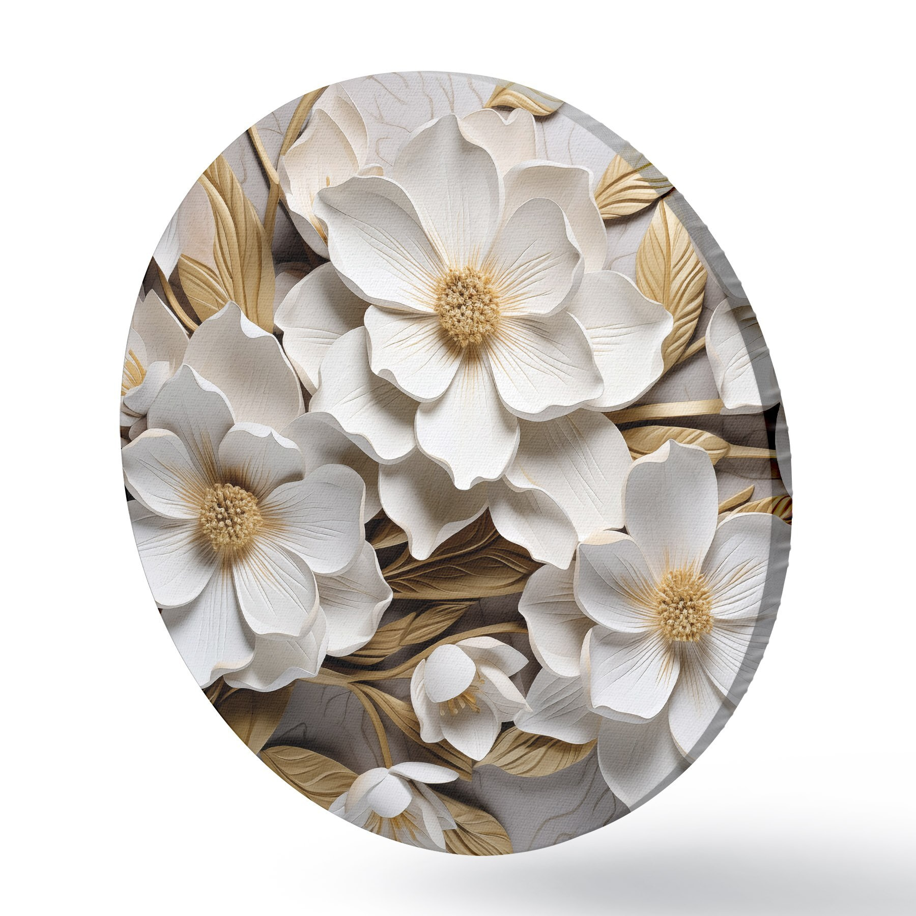 Pilt Valged lilled reljeefse fresko stiilis kollaste aktsentidega Nr r43330