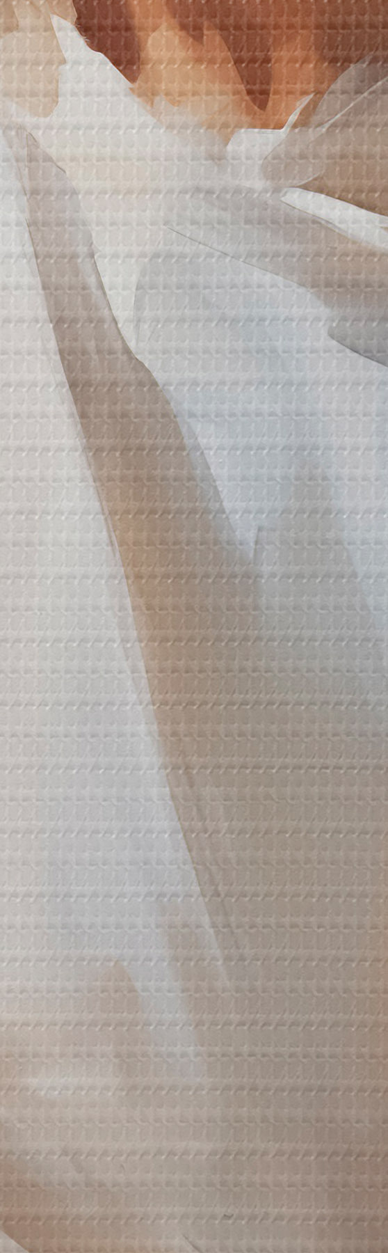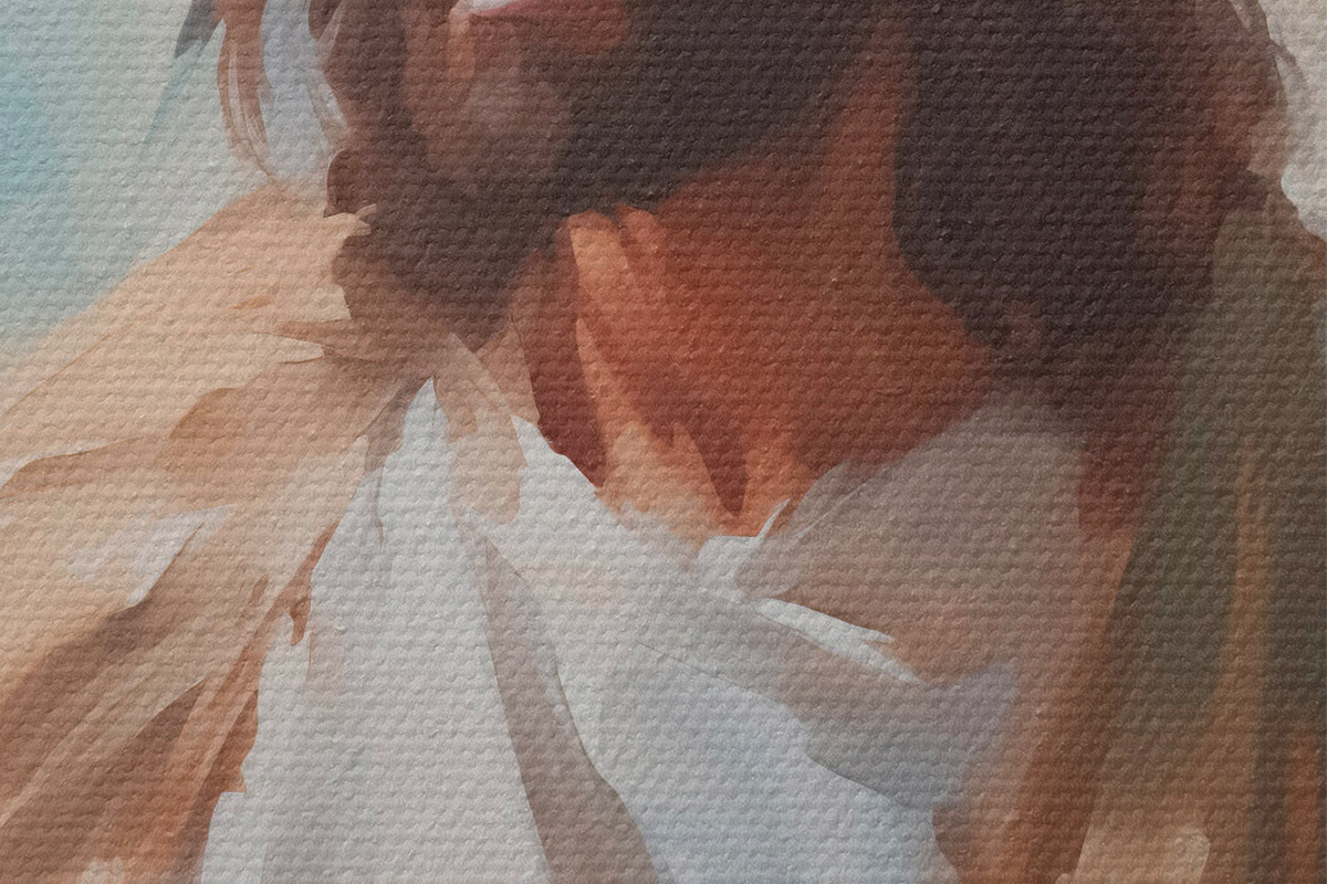 Selle lõuendi peenike niidipunus meenutab professionaalse kunstniku lõuendi pinda.