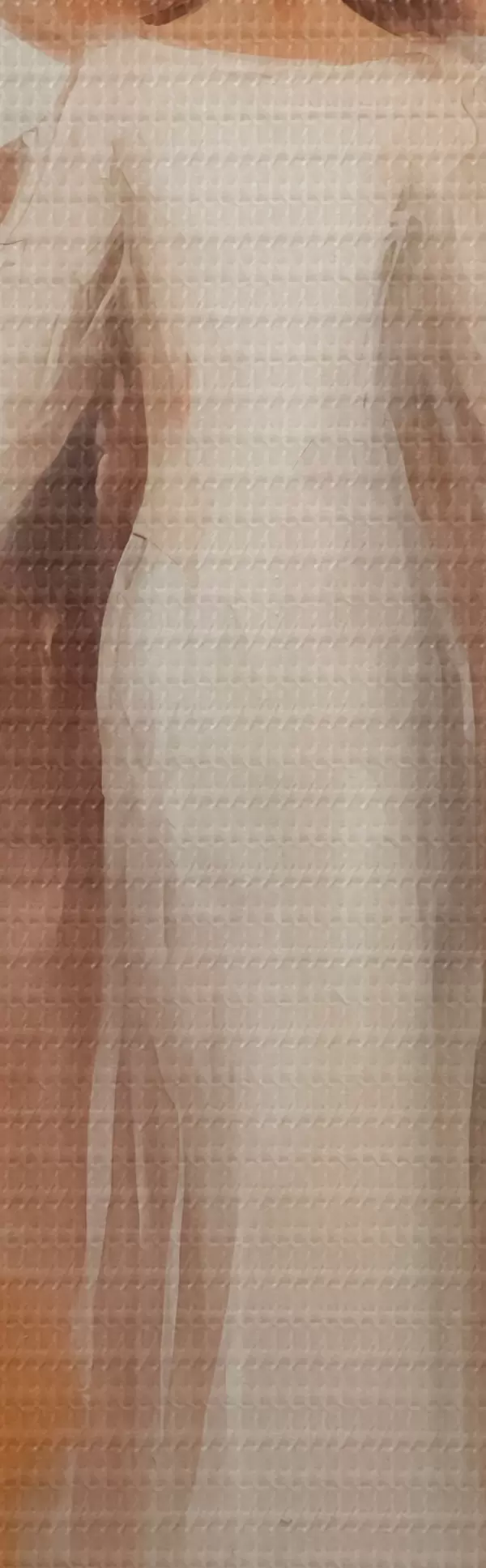 Selle lõuendi peenike niidipunus meenutab professionaalse kunstniku lõuendi pinda.