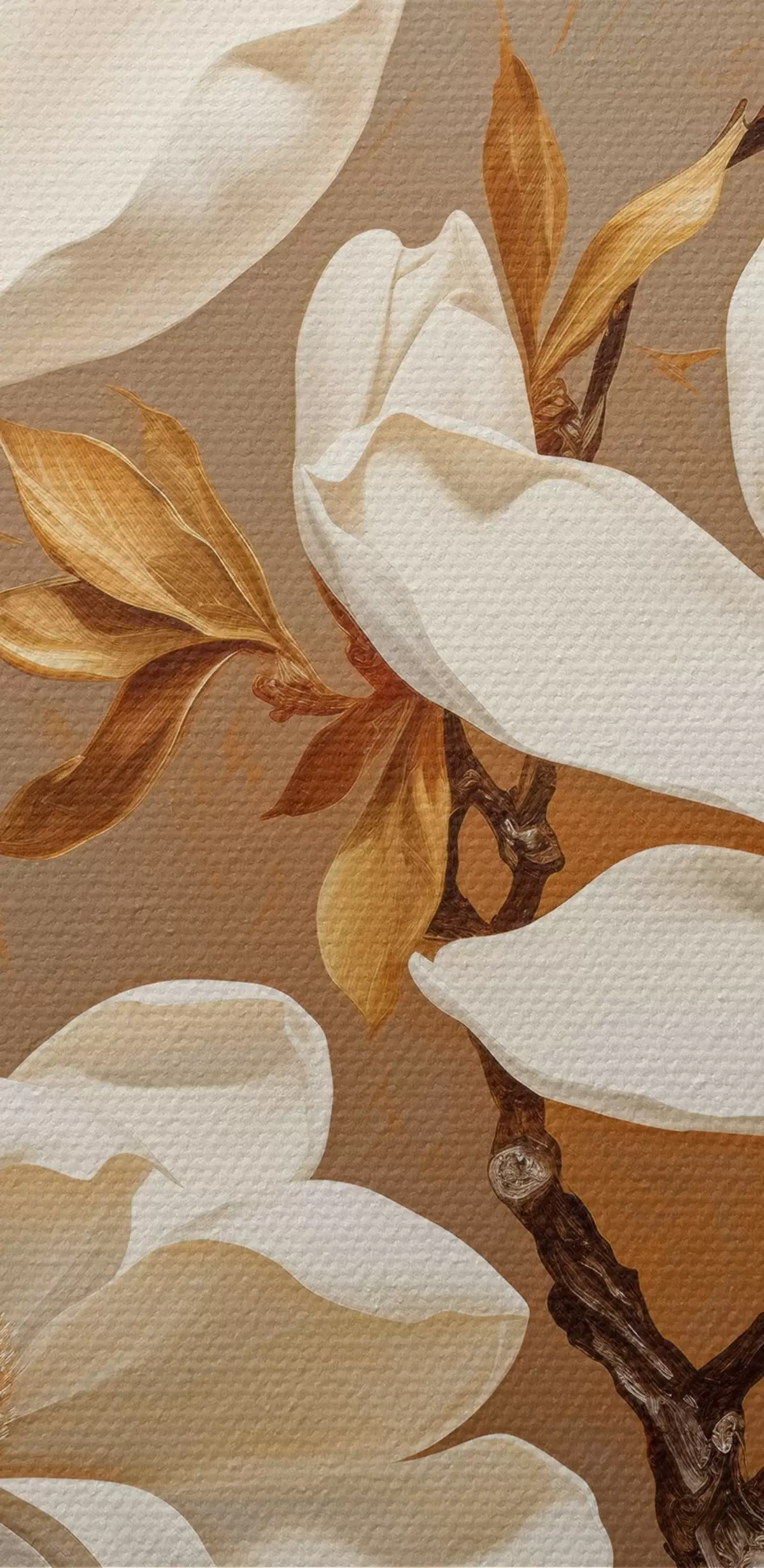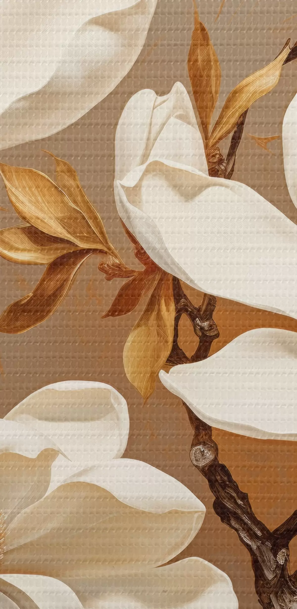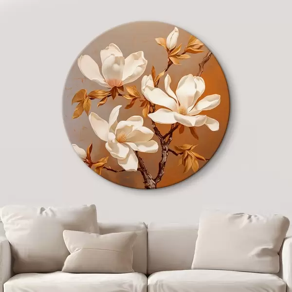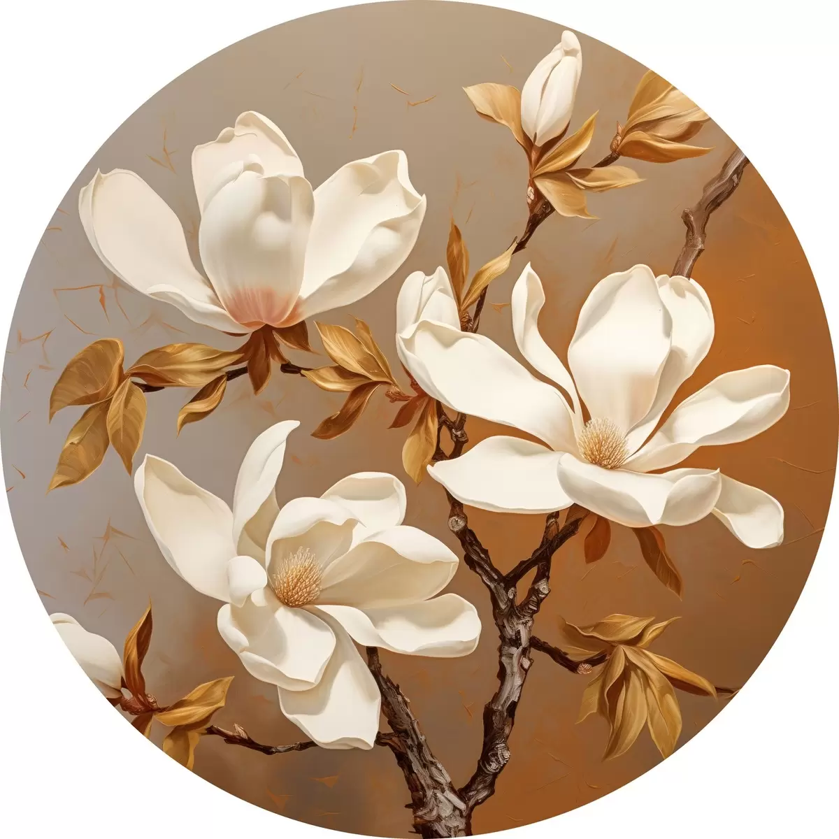 Pilt Õlimaal stiilis valge magnoolia oksal kollasel taustal Nr r43361