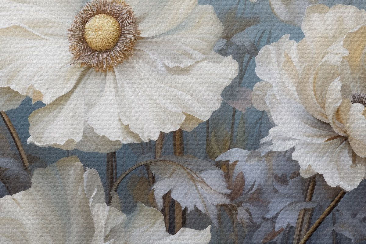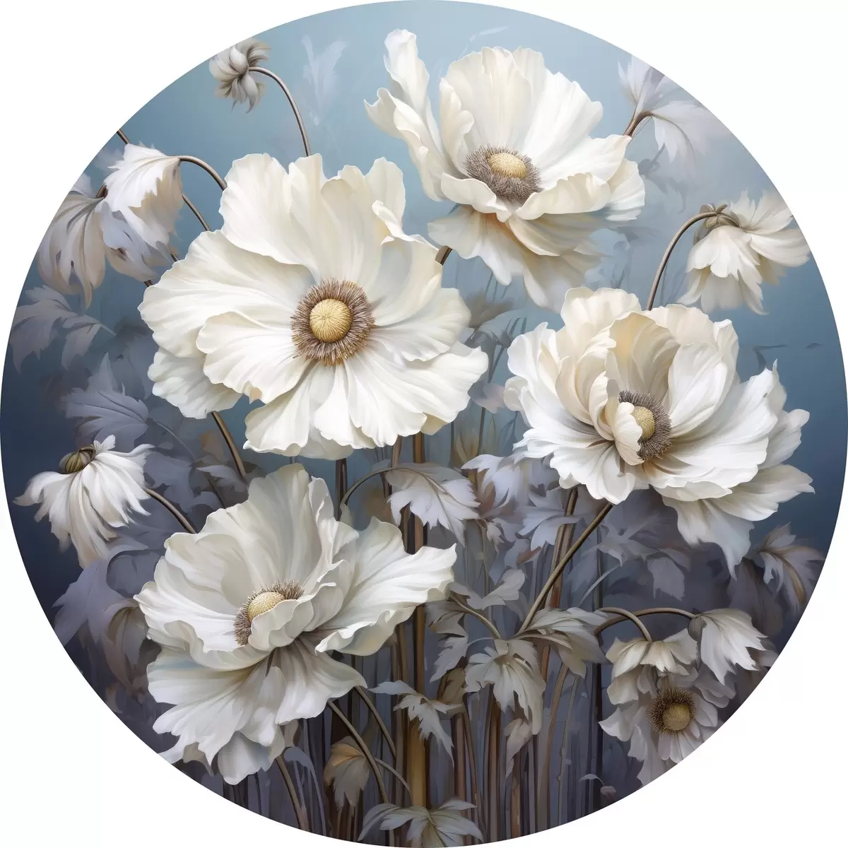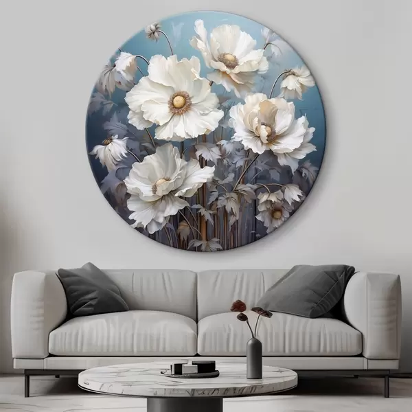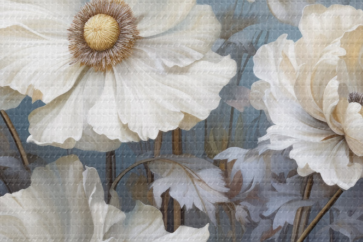Pilt Valge kimp pojengid sinisel taustal maalimisstiilis Nr r43370