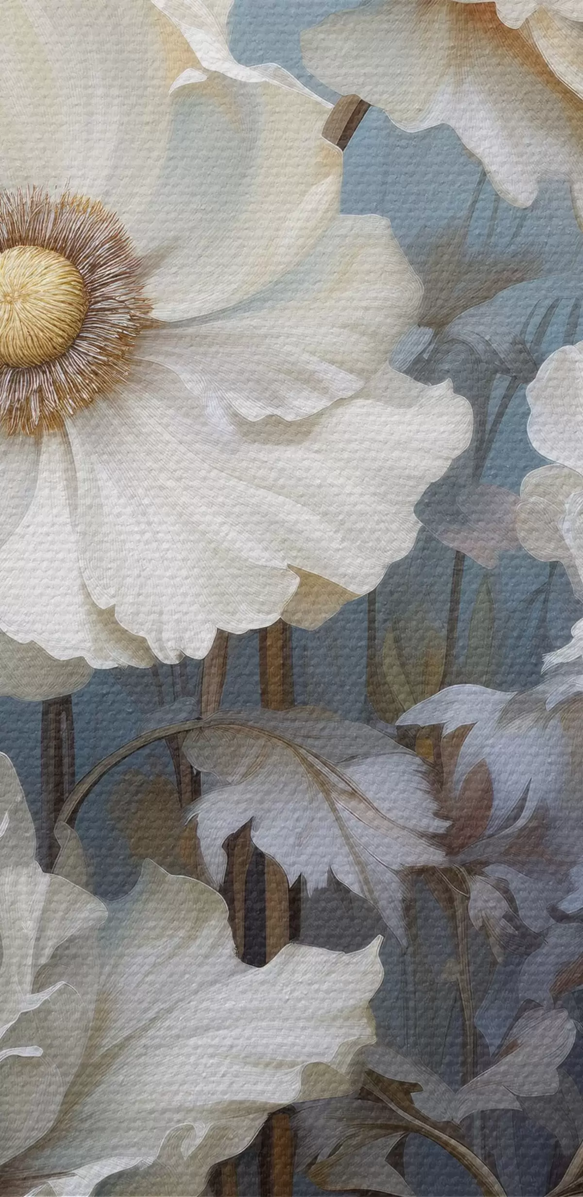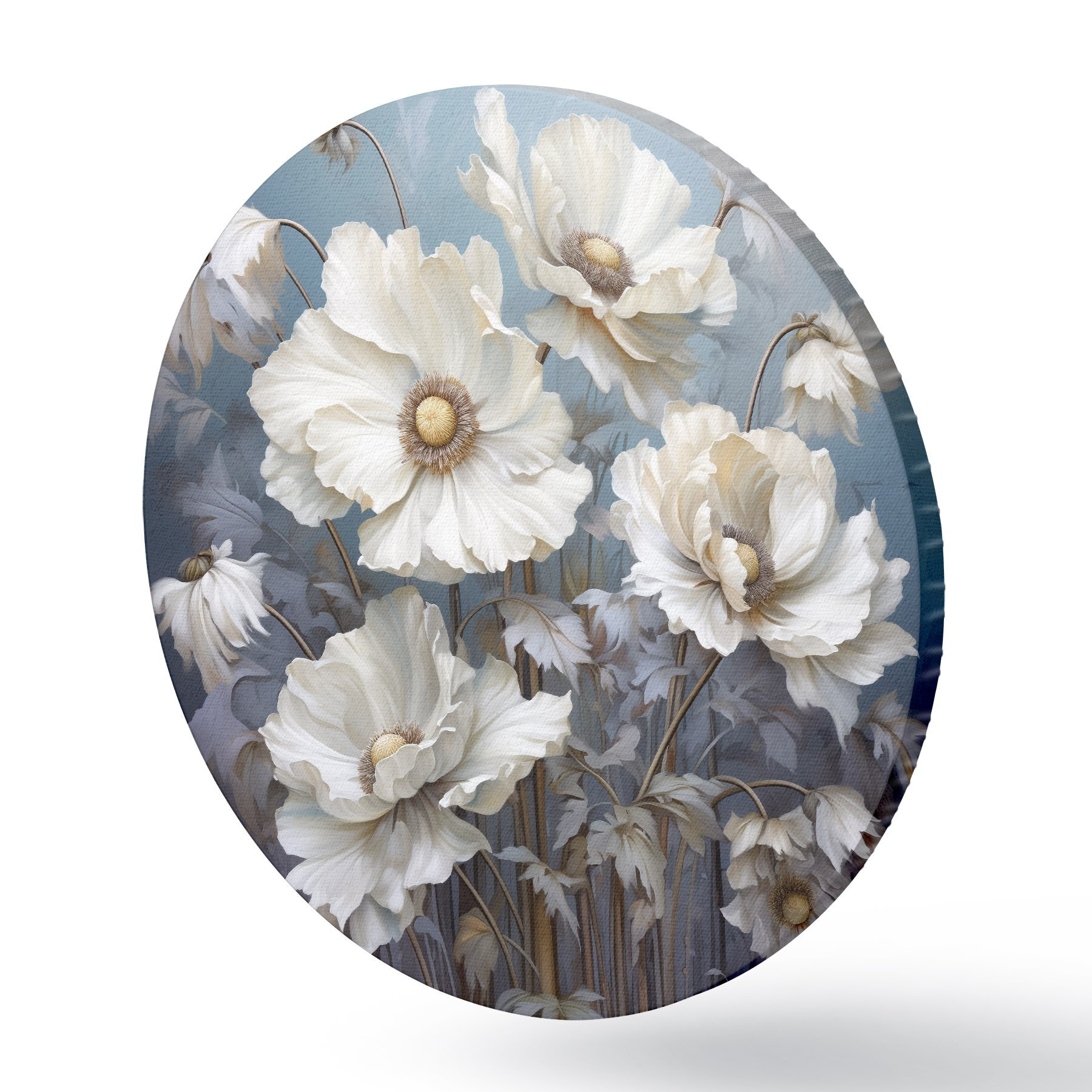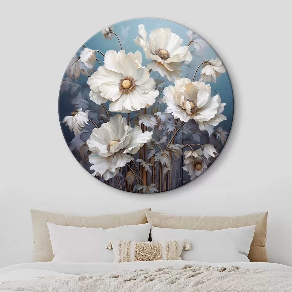 Pilt Valge kimp pojengid sinisel taustal maalimisstiilis Nr r43370