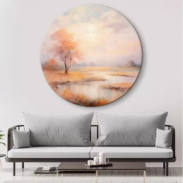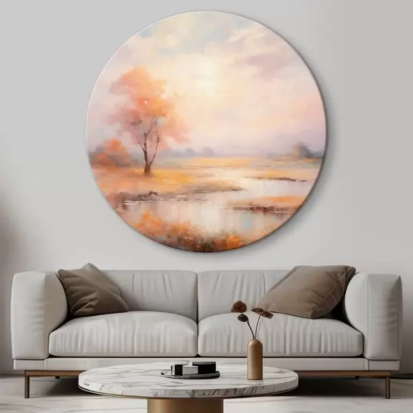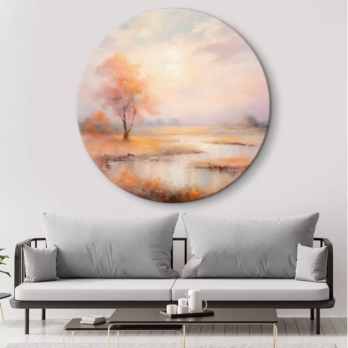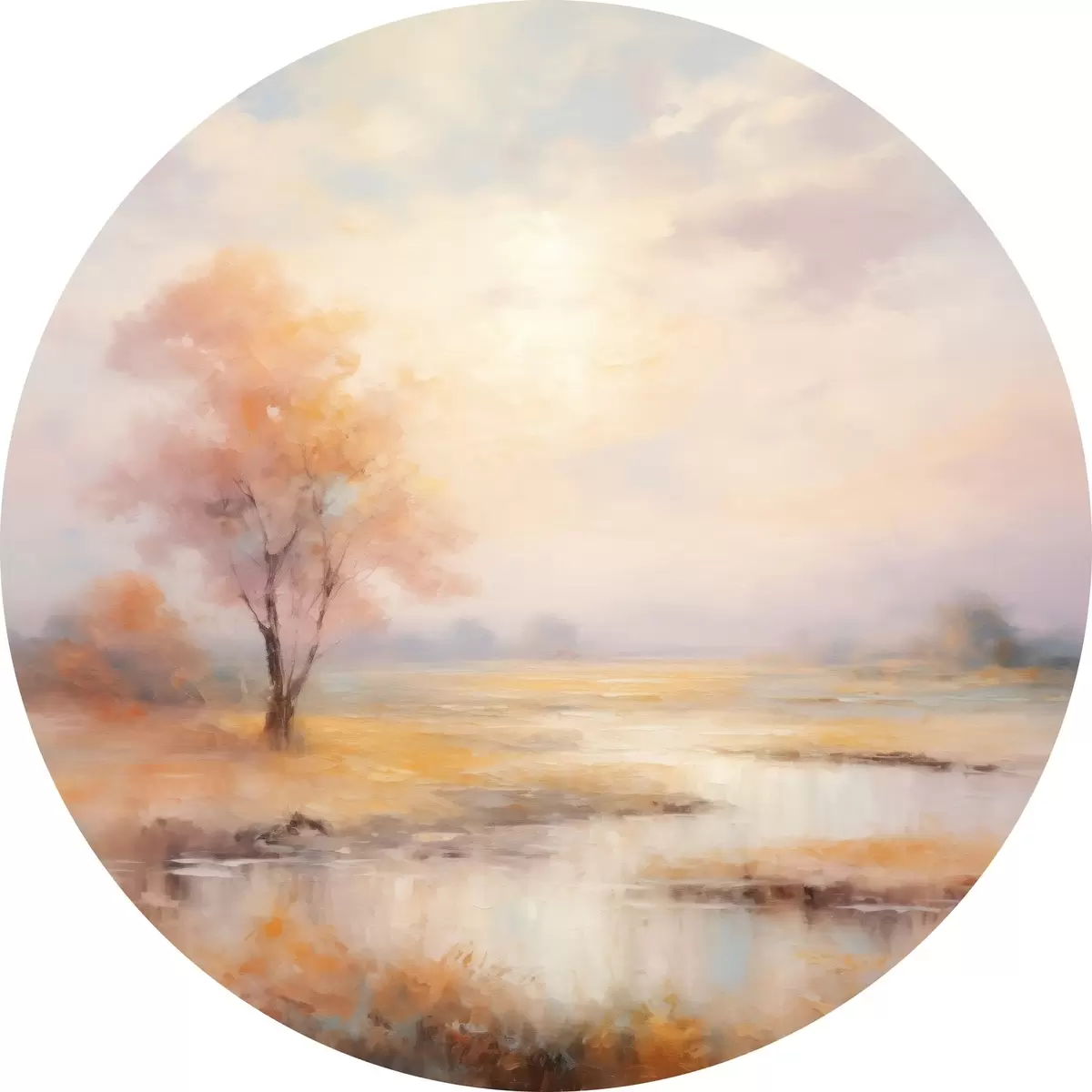 Pilt Maastik soojades toonides koos jõe ja puuga Nr r43375