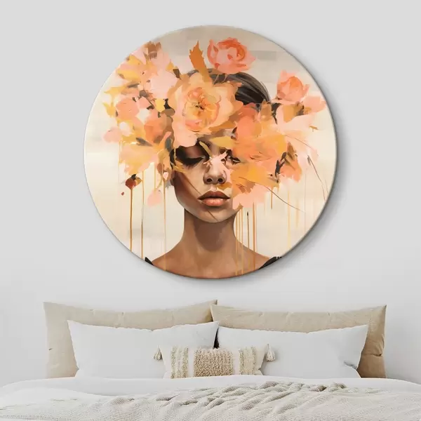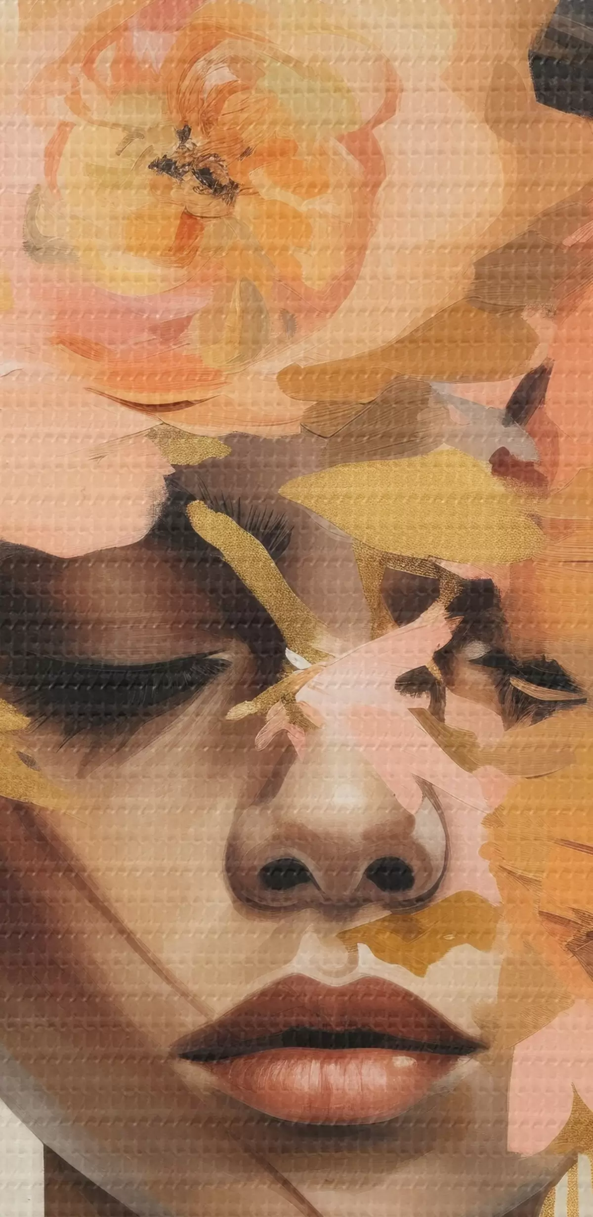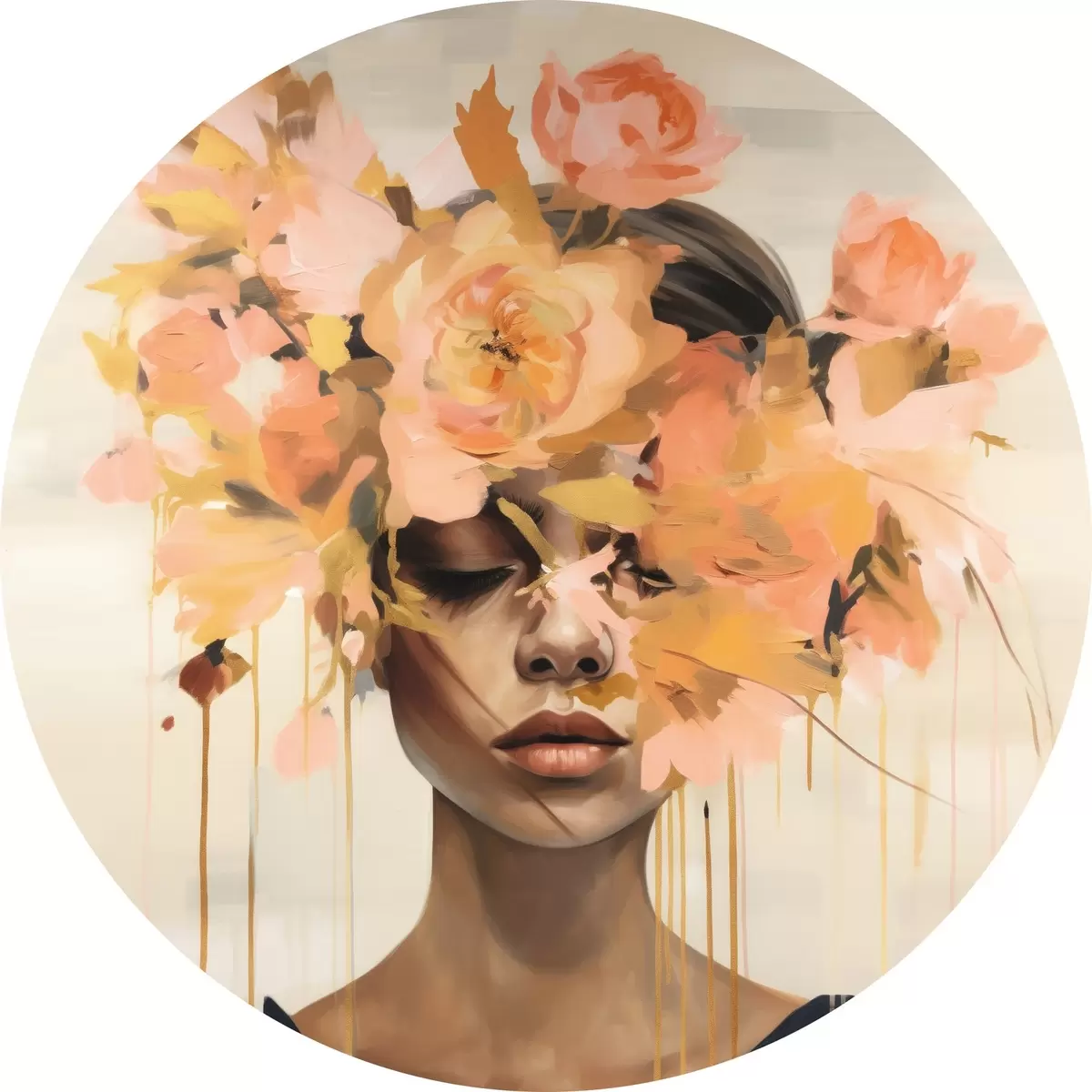 Pilt Tüdruk, kellel on värvid näol ja lilled peas Nr r43382