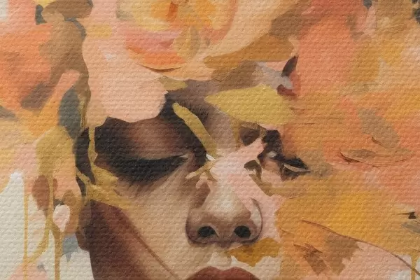 Selle lõuendi peenike niidipunus meenutab professionaalse kunstniku lõuendi pinda.