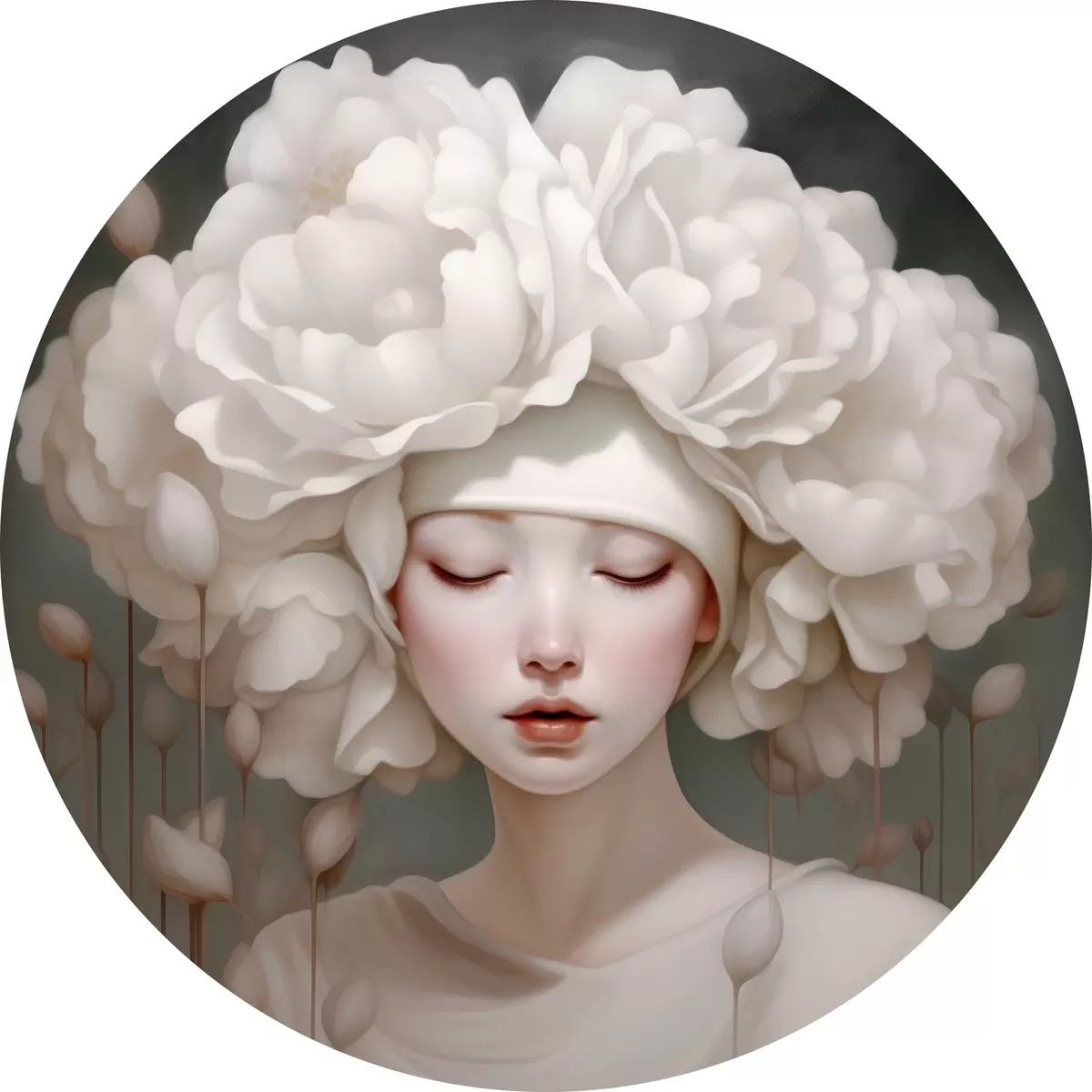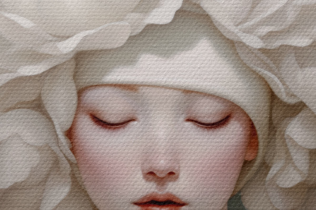 Pilt Tüdruk lilledega peas pehmetes toonides Nr r43385