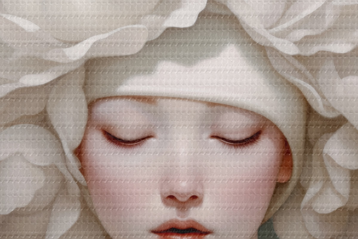 Selle lõuendi peenike niidipunus meenutab professionaalse kunstniku lõuendi pinda.