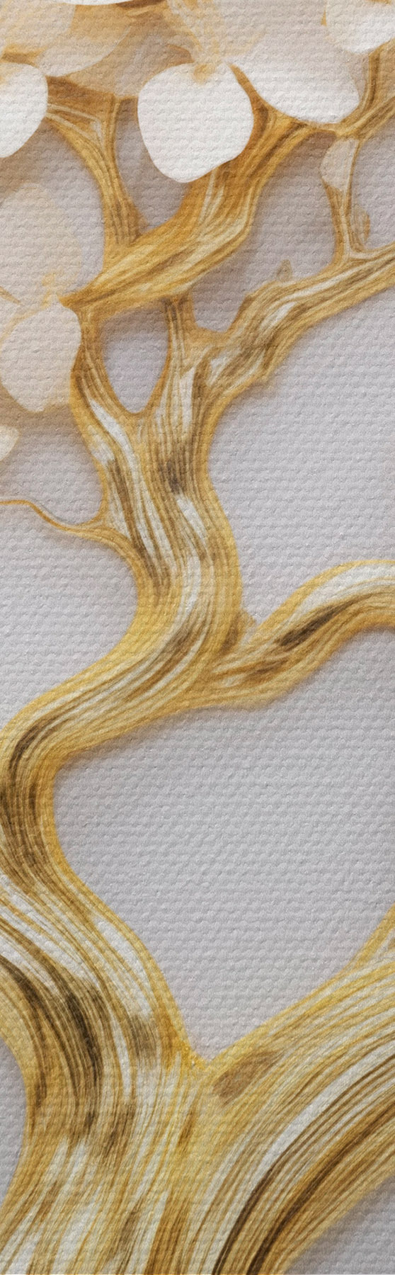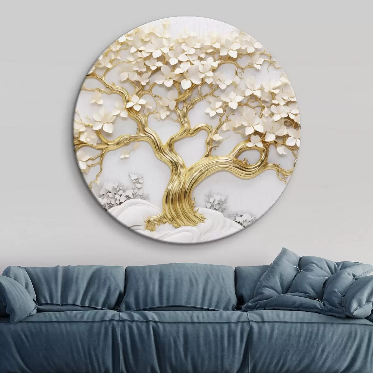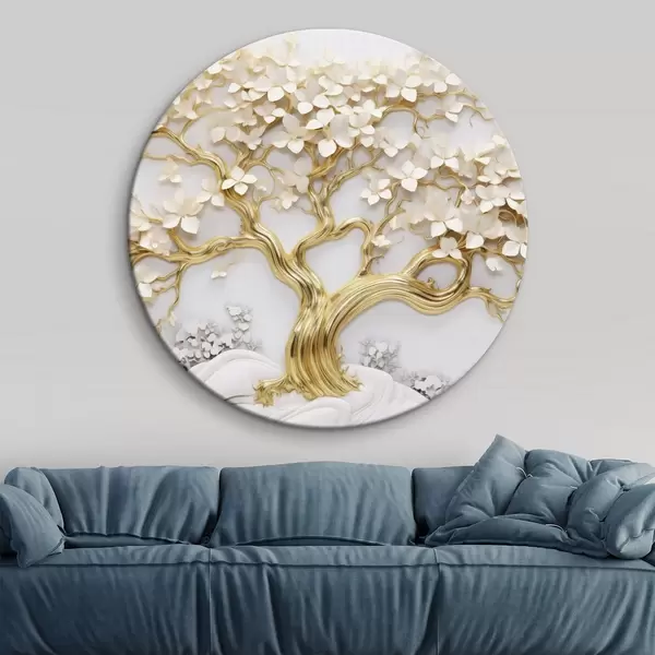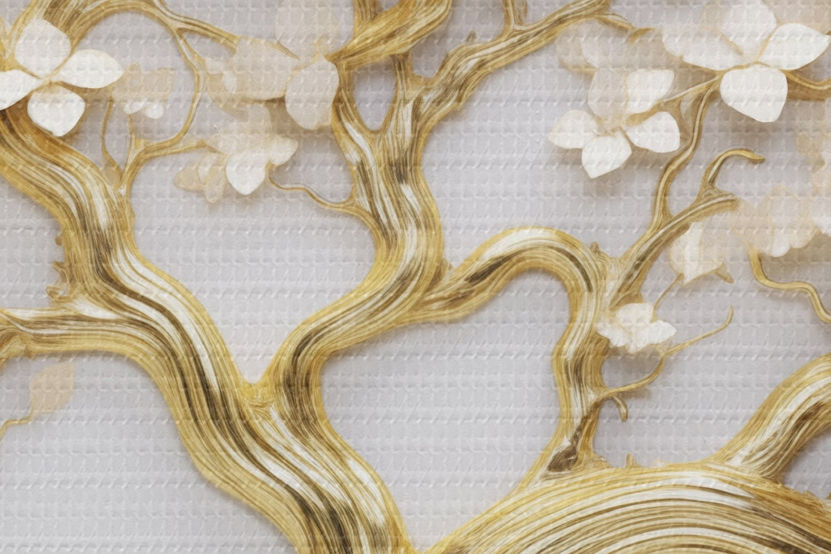 Pilt Dekoratiivne puu valgete lilledega, valge taust, valged kivid, keerulised detailid, loodusest inspireeritud kunst Nr r43388