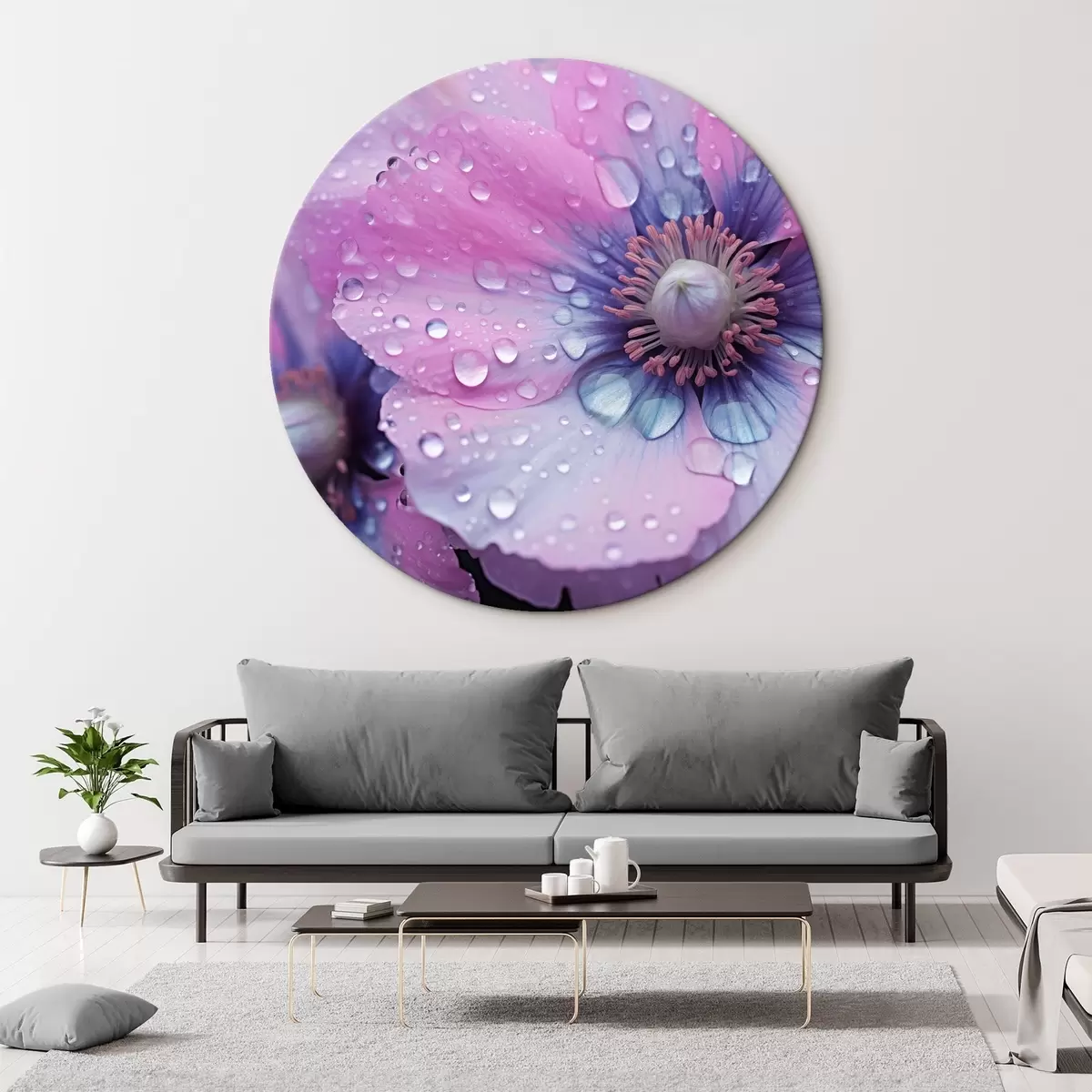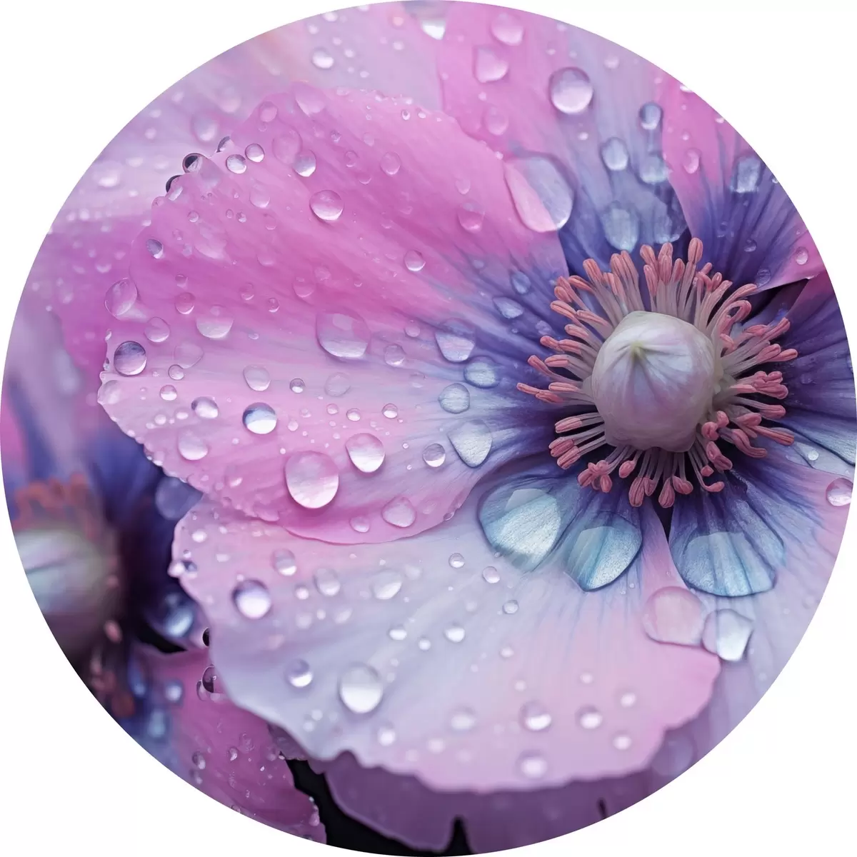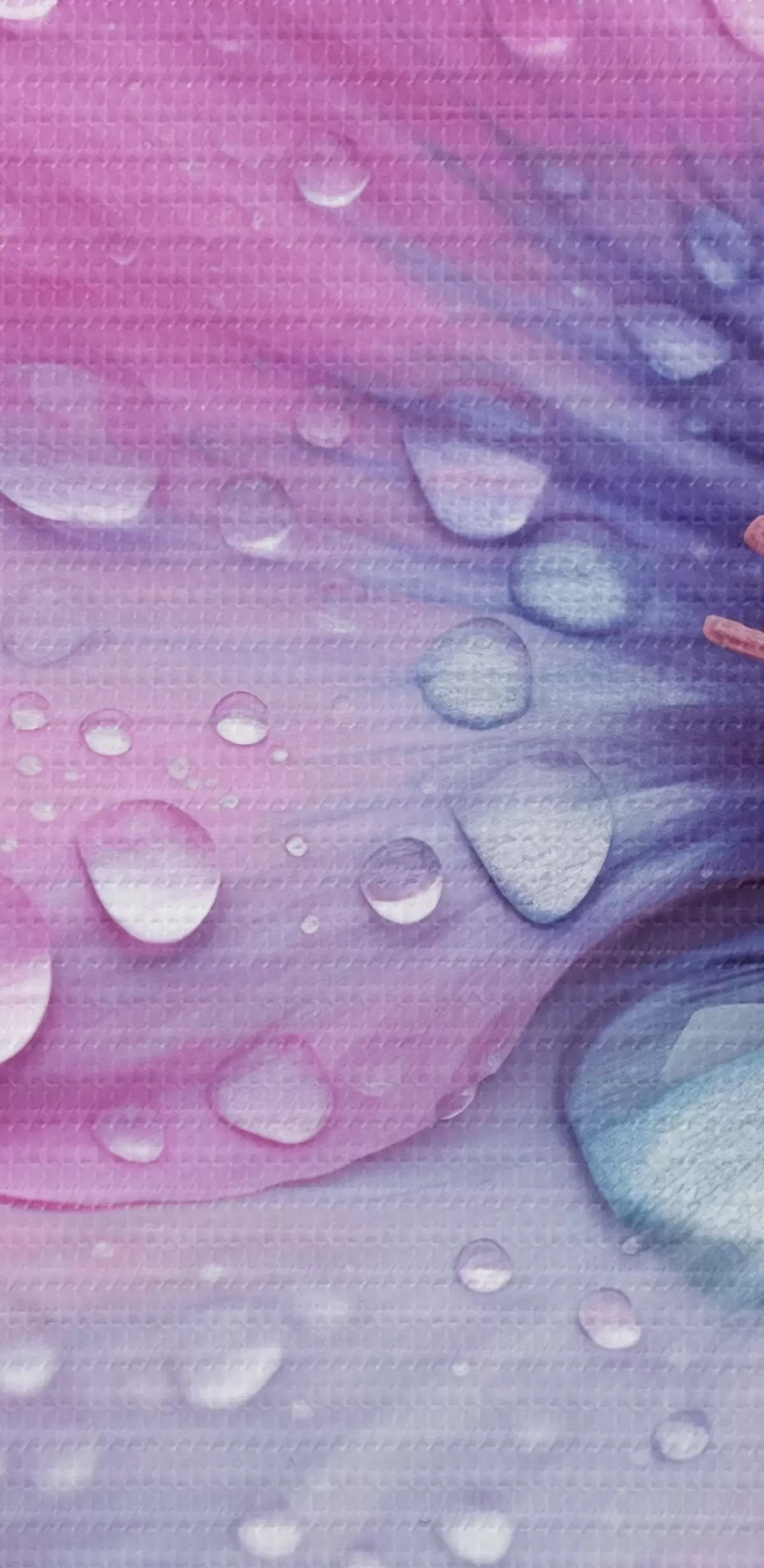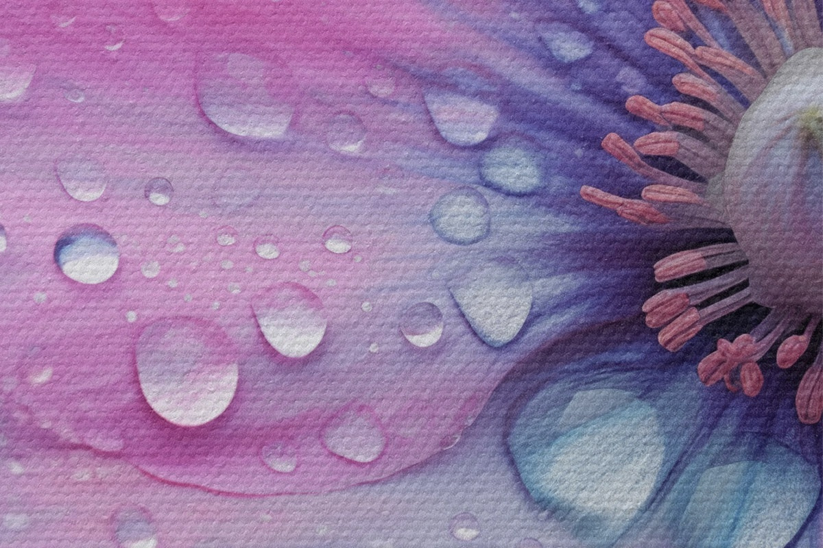 Pilt Roosad ja lillad õied täies õitsengus, kaetud veetilkadega, tumedal taustal Nr r43394