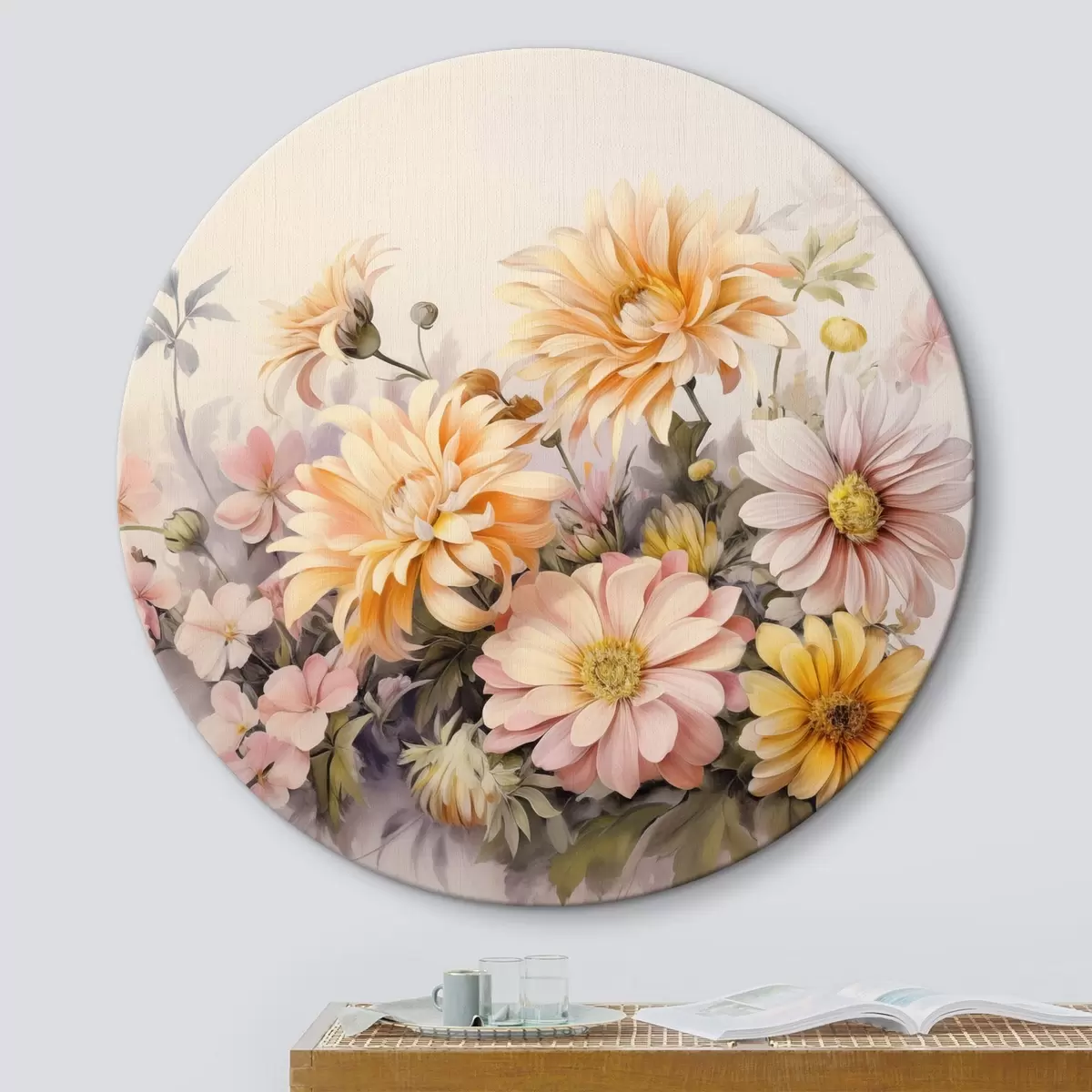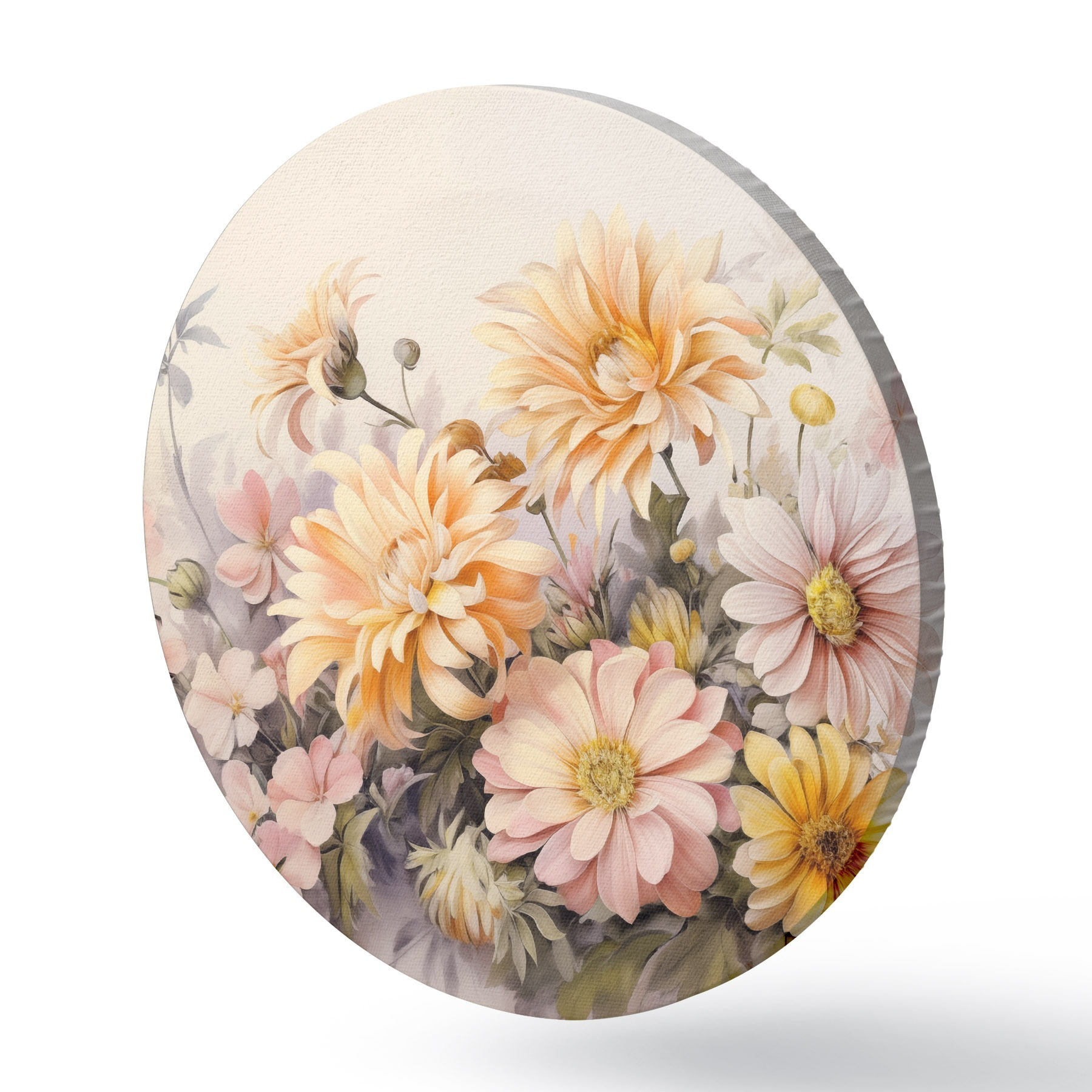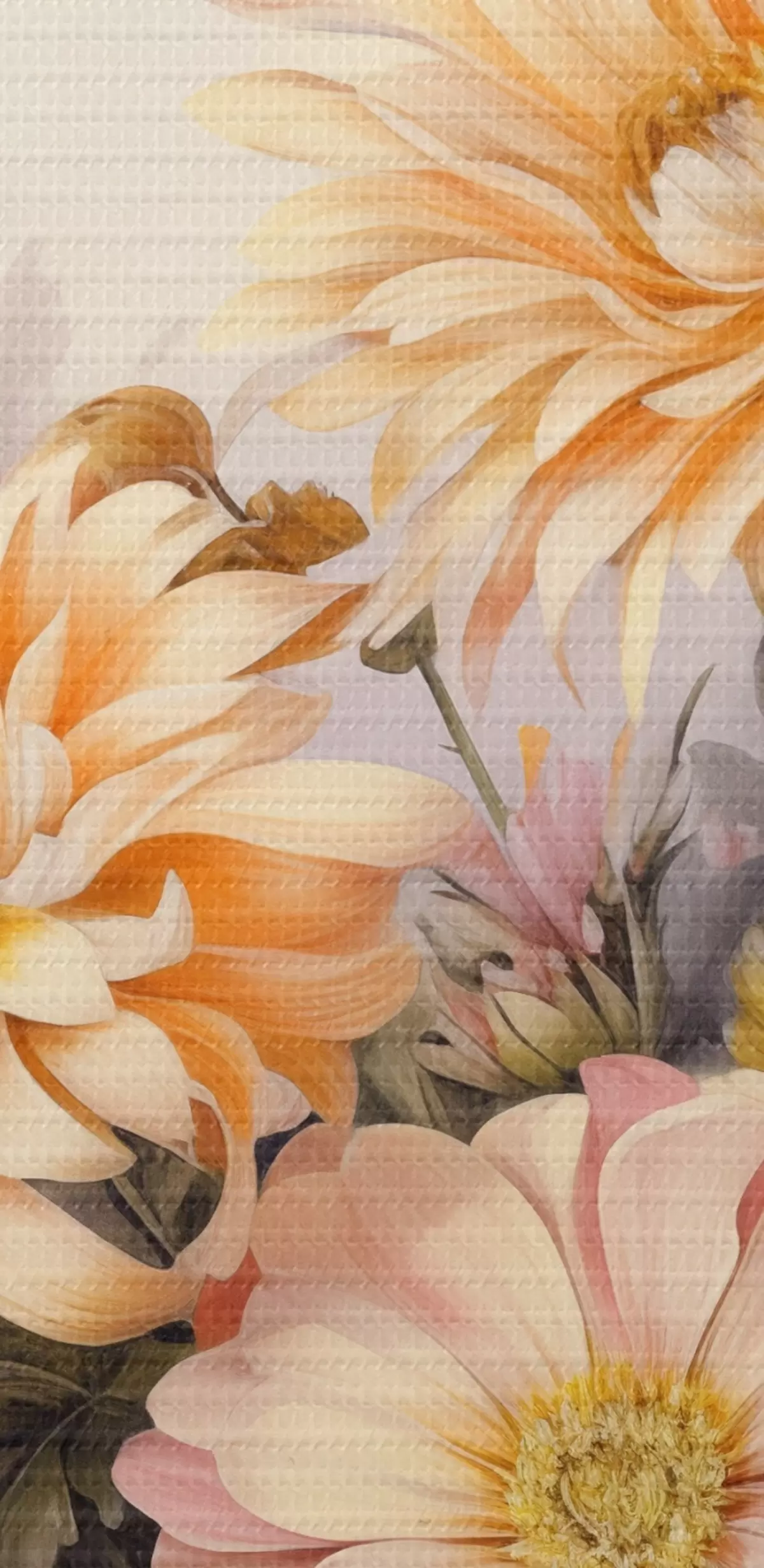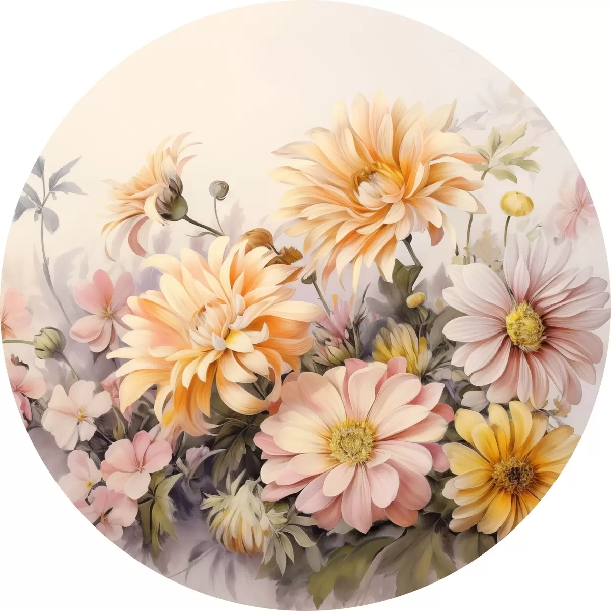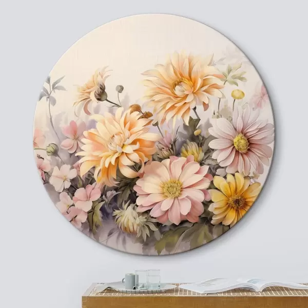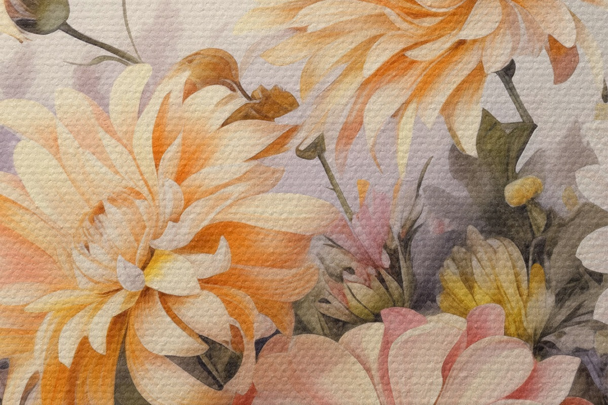 Pilt Roosa, kollase ja oranži värvi lillede kollektsioon, kerge taust, pehmed värvid, vintage stiilis, botaaniline illustratsioon Nr r43401