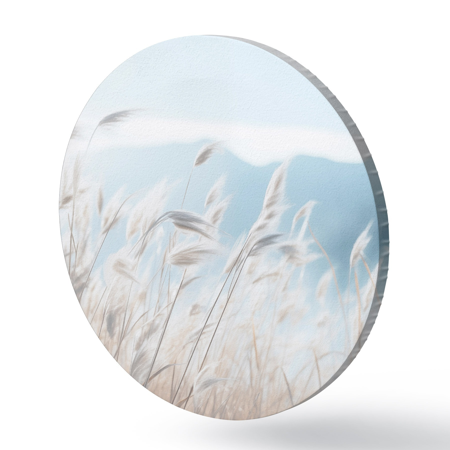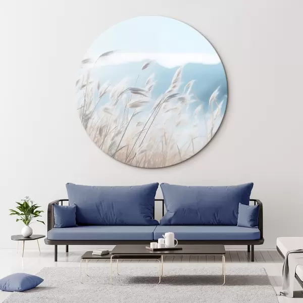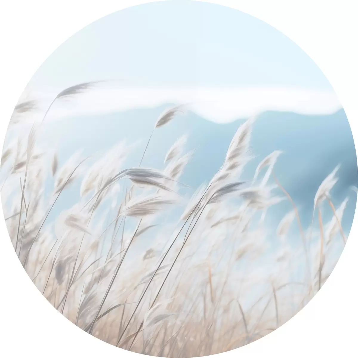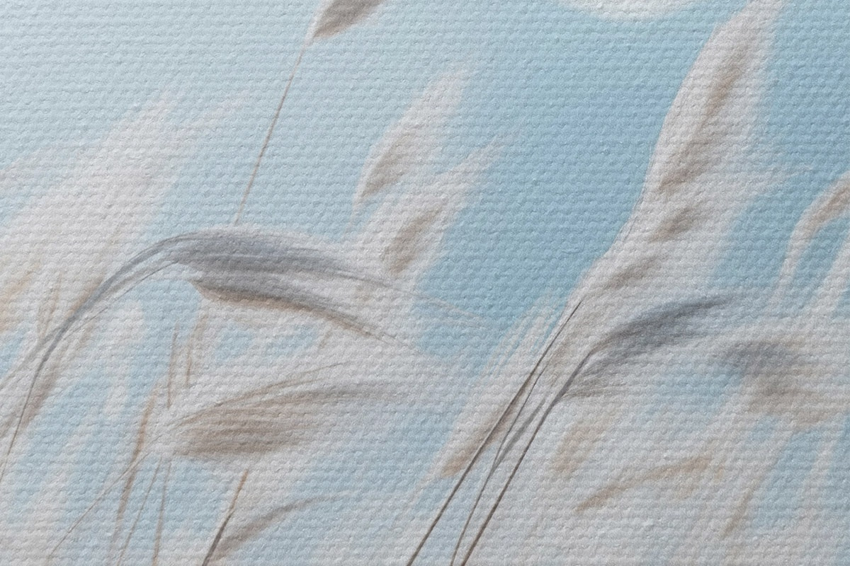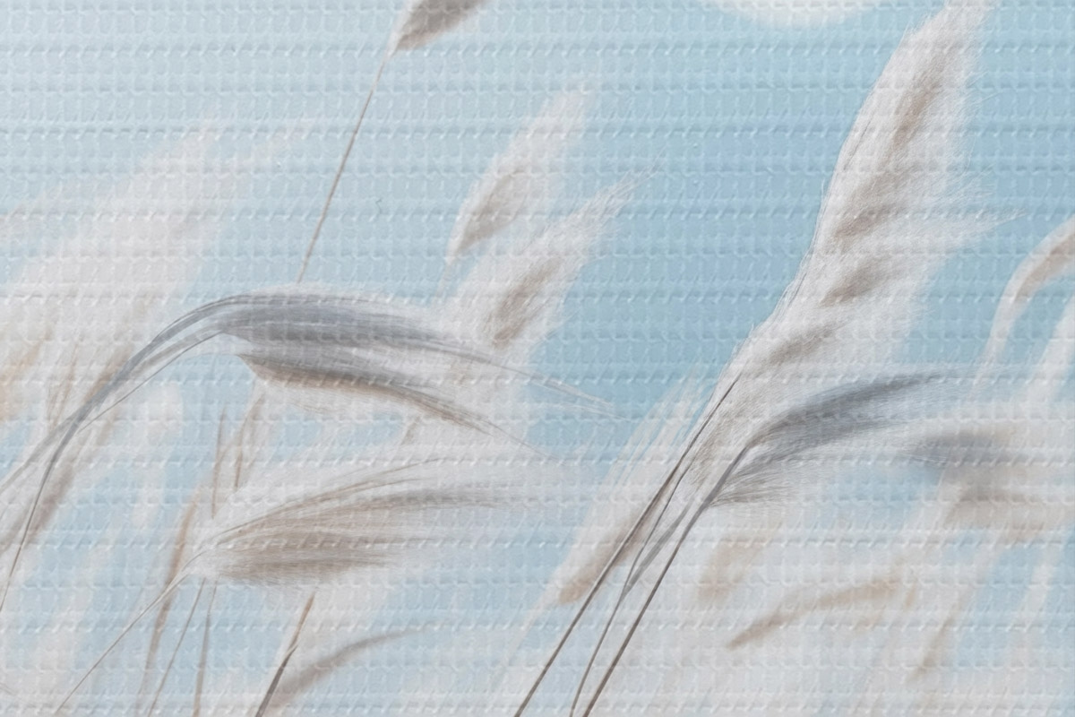 Pilt Rohi, pampa väli sinise mäega taustal, helesinine taevas, minimalistlik, pastelsed värvid Nr r43404
