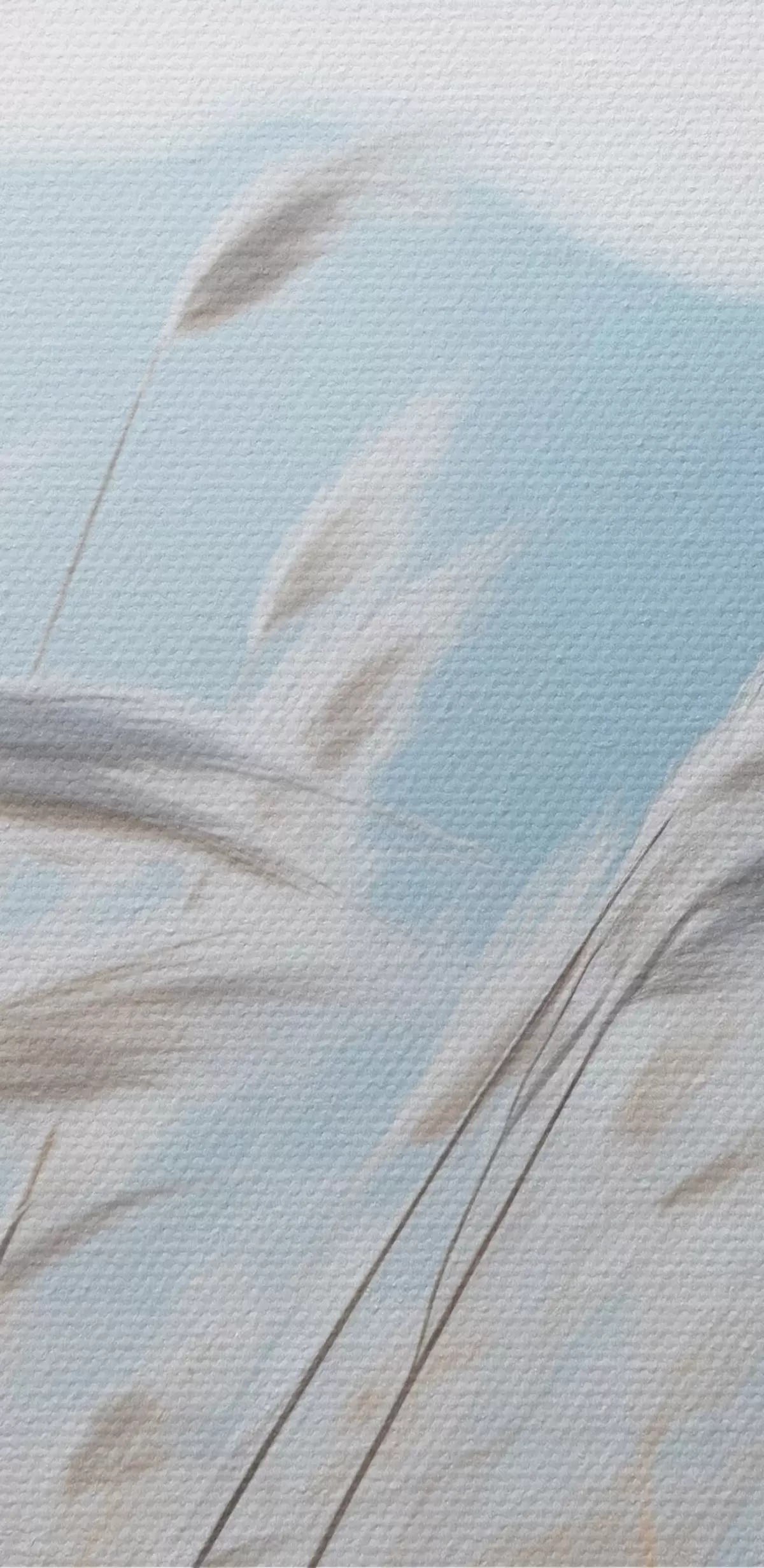 Selle lõuendi peenike niidipunus meenutab professionaalse kunstniku lõuendi pinda.