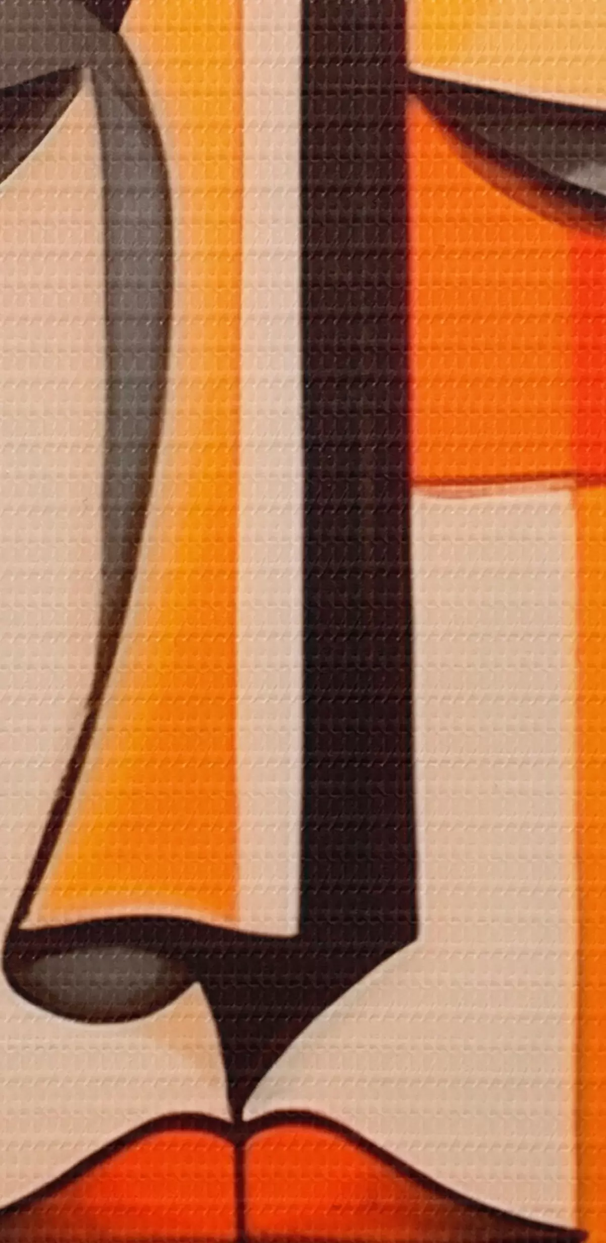 Selle lõuendi peenike niidipunus meenutab professionaalse kunstniku lõuendi pinda.