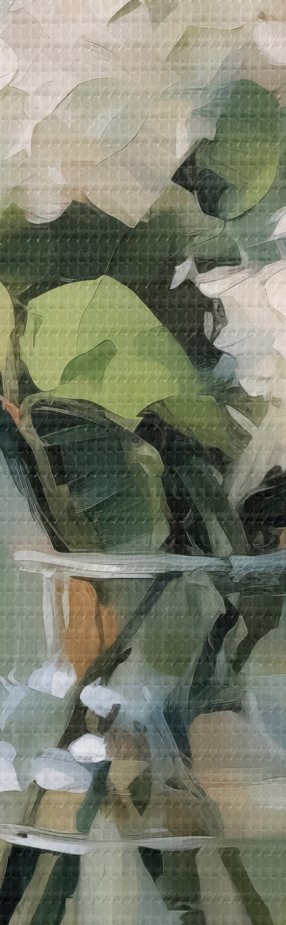 Selle lõuendi peenike niidipunus meenutab professionaalse kunstniku lõuendi pinda.