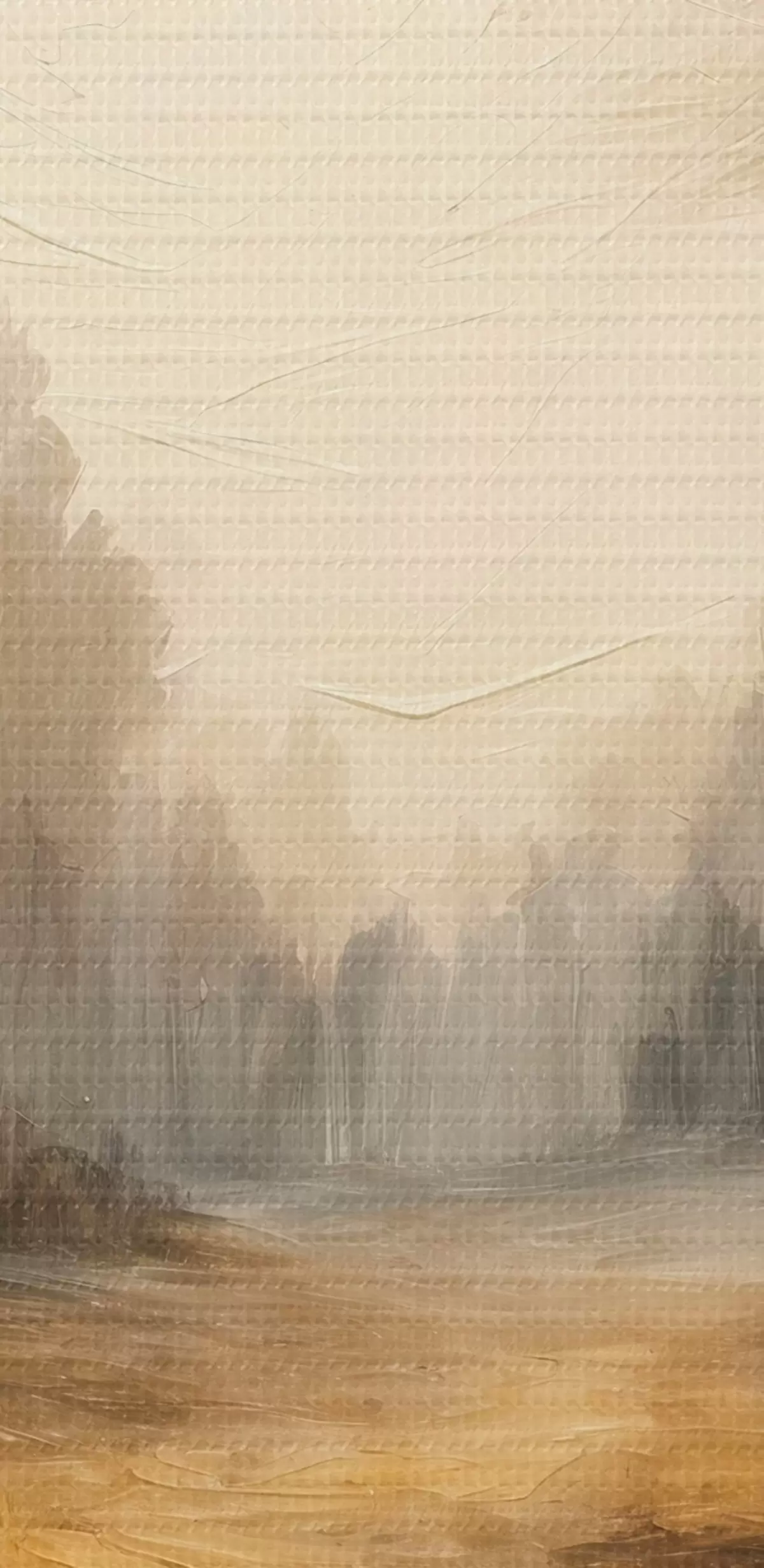 Selle lõuendi peenike niidipunus meenutab professionaalse kunstniku lõuendi pinda.