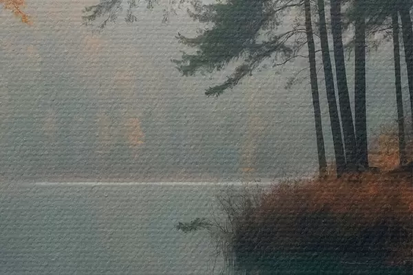 Selle lõuendi peenike niidipunus meenutab professionaalse kunstniku lõuendi pinda.