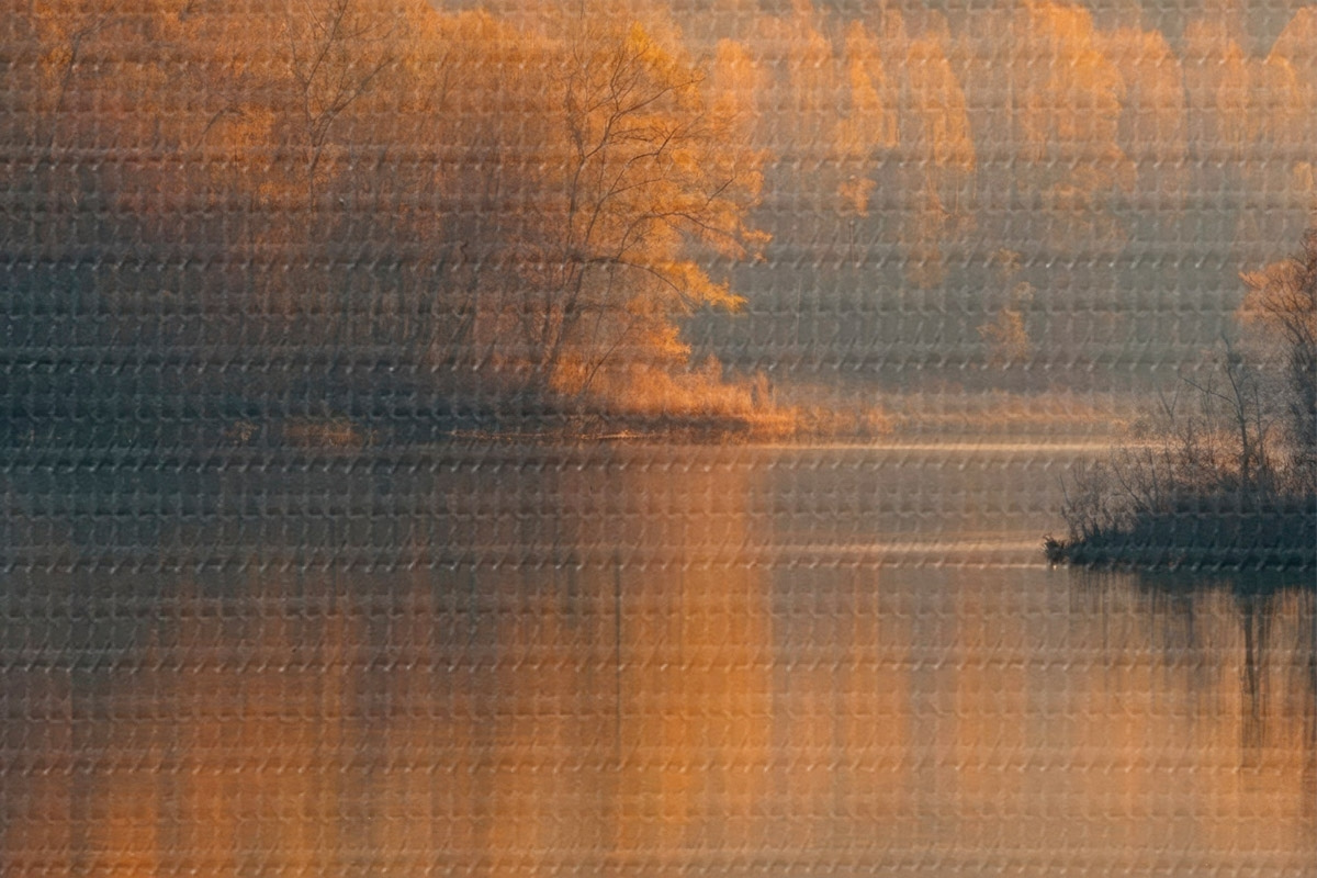 Selle lõuendi peenike niidipunus meenutab professionaalse kunstniku lõuendi pinda.