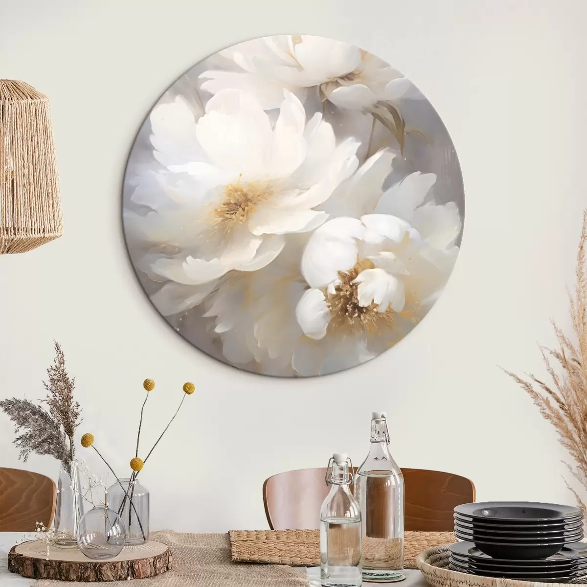 Pilt Valged lilled ja varred hägusel taustal Nr r43473
