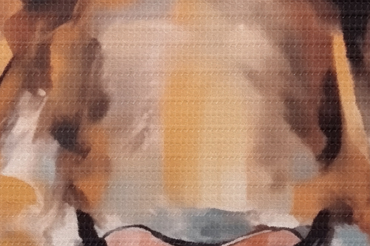 Selle lõuendi peenike niidipunus meenutab professionaalse kunstniku lõuendi pinda.