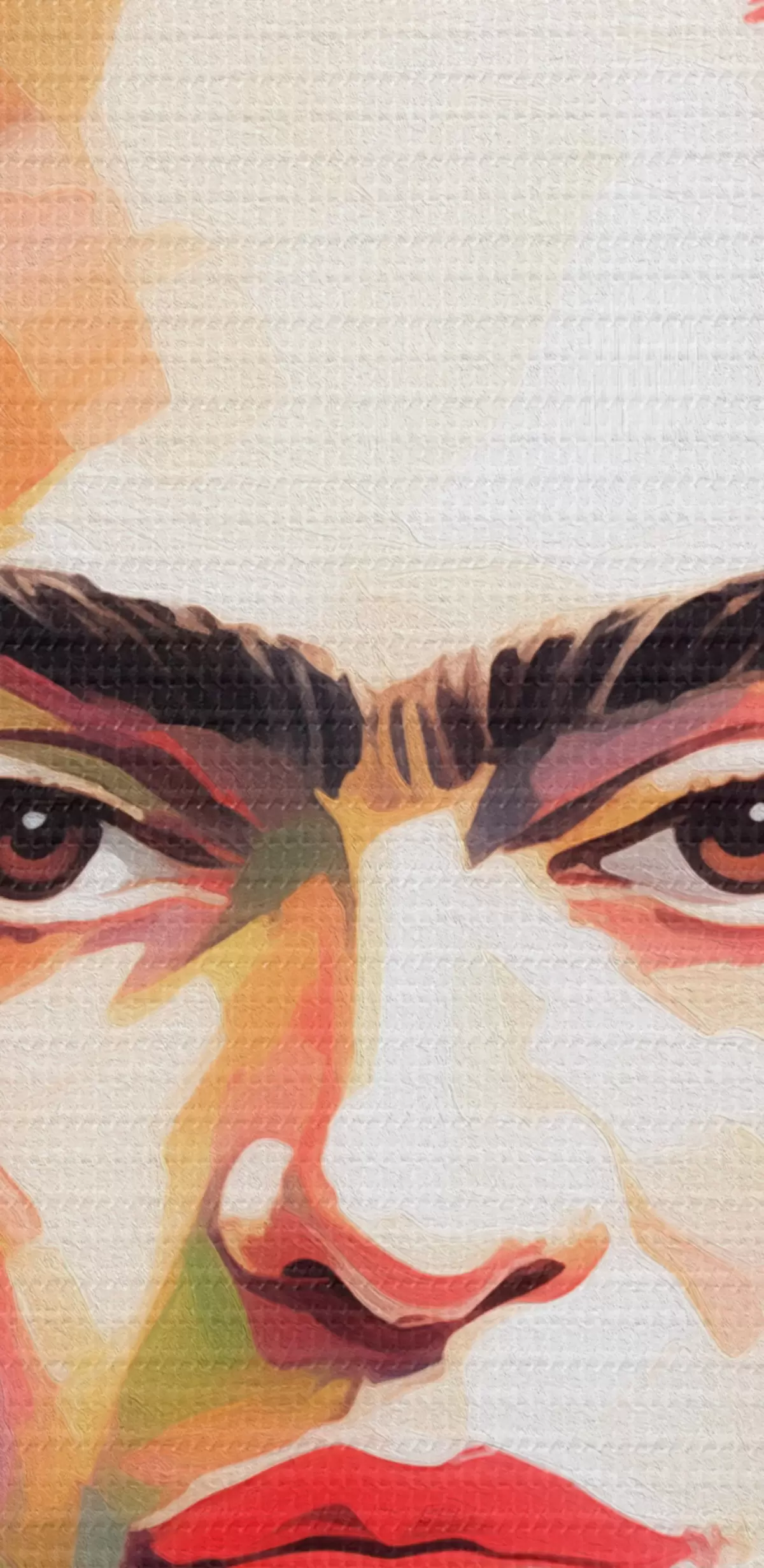 Selle lõuendi peenike niidipunus meenutab professionaalse kunstniku lõuendi pinda.