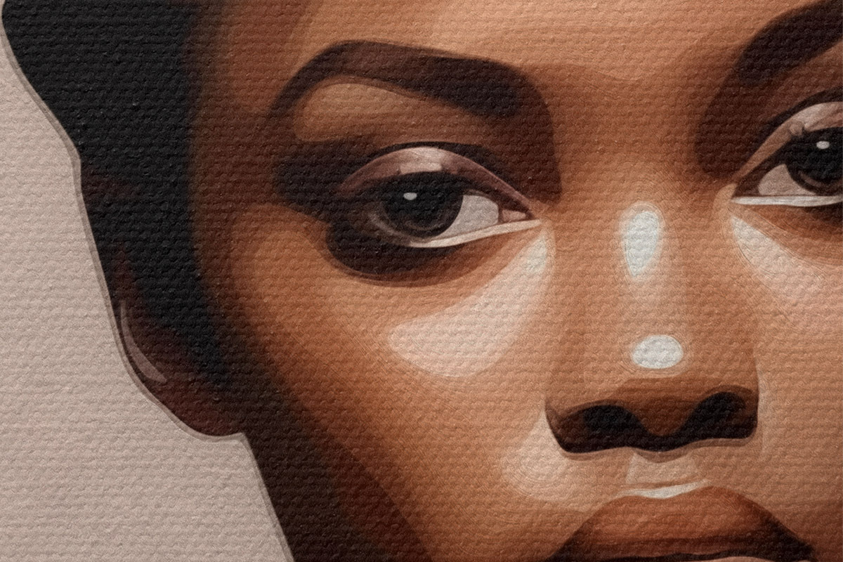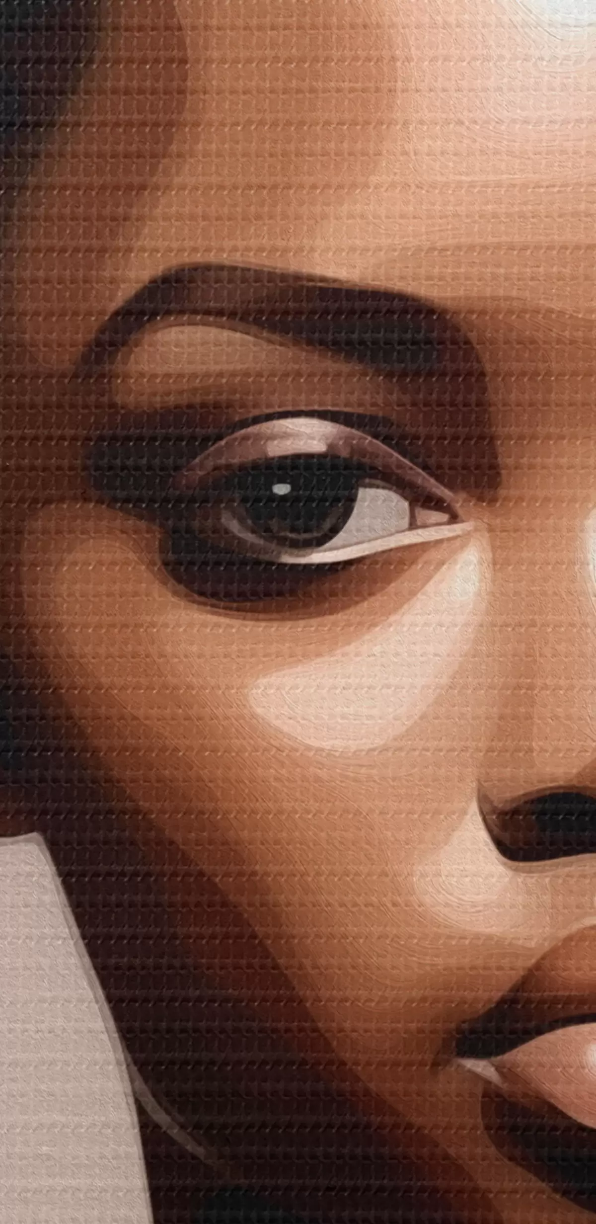 Selle lõuendi peenike niidipunus meenutab professionaalse kunstniku lõuendi pinda.