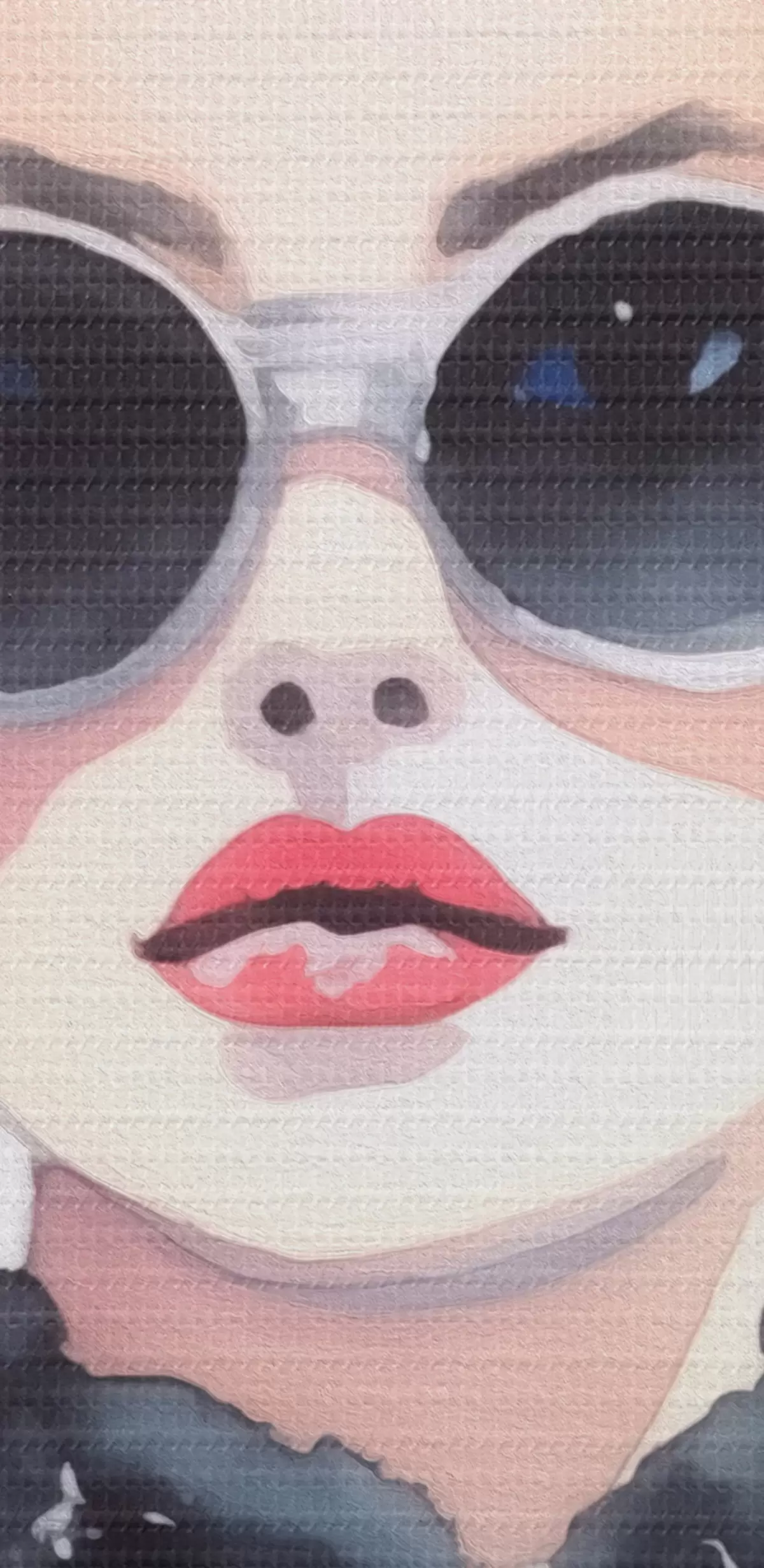 Selle lõuendi peenike niidipunus meenutab professionaalse kunstniku lõuendi pinda.