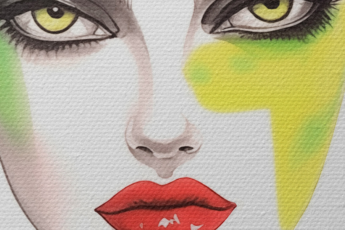 Selle lõuendi peenike niidipunus meenutab professionaalse kunstniku lõuendi pinda.