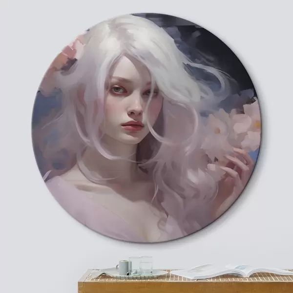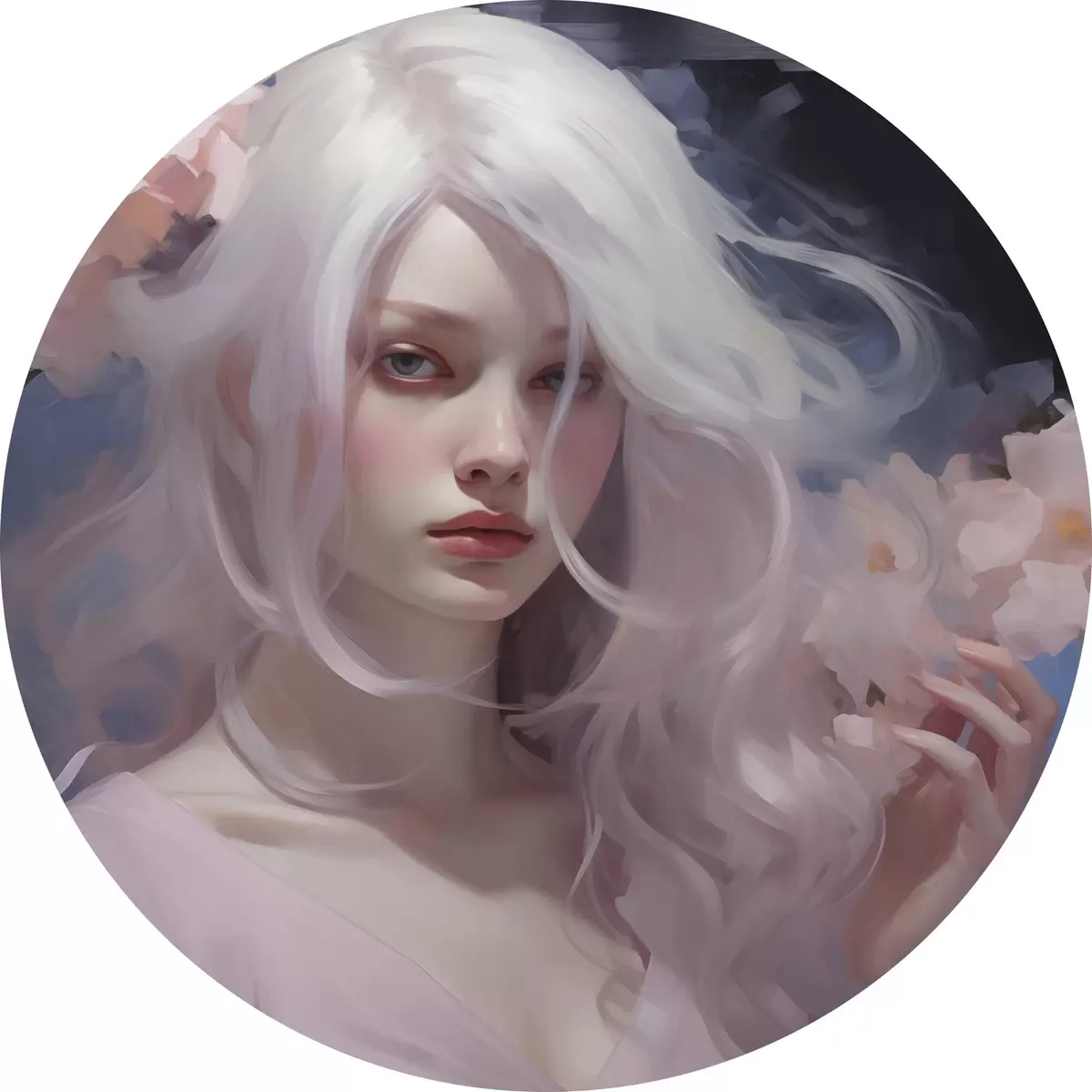 Pilt Tüdruk ploomidega, akrüülstiilis joonistus, tumedal taustal Nr r43496