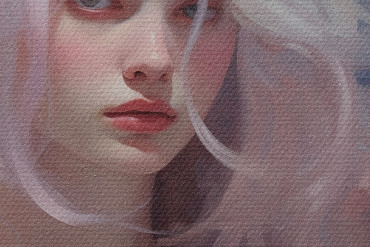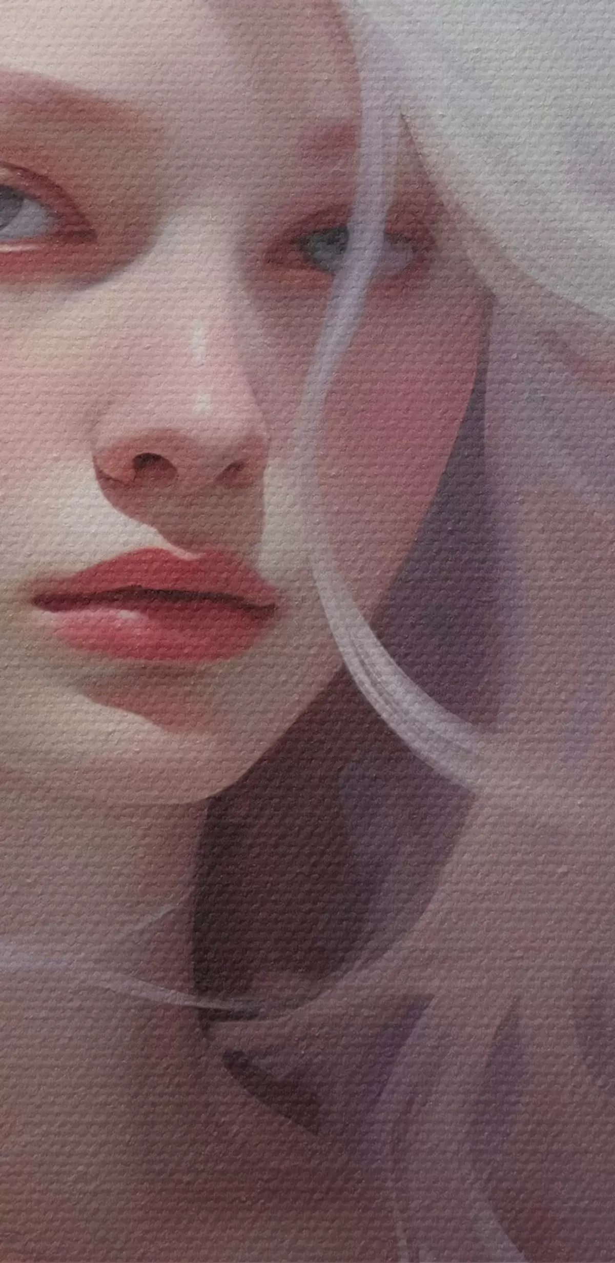 Selle lõuendi peenike niidipunus meenutab professionaalse kunstniku lõuendi pinda.