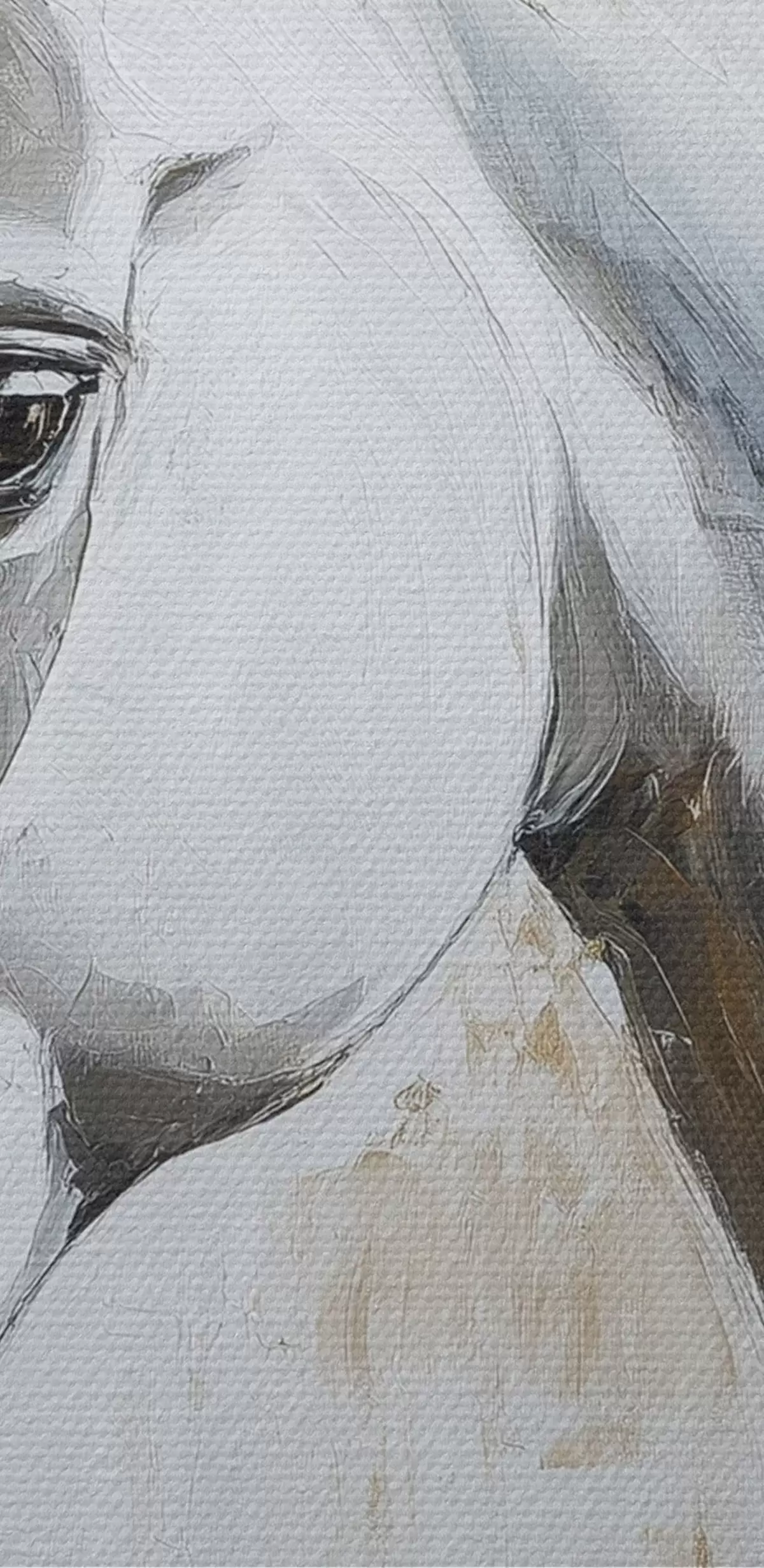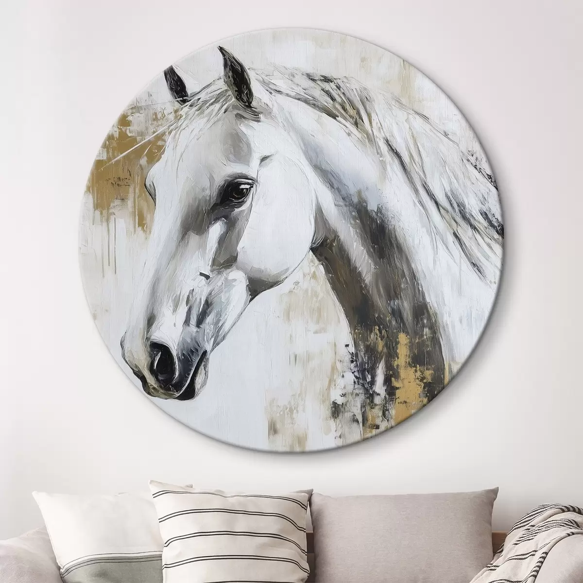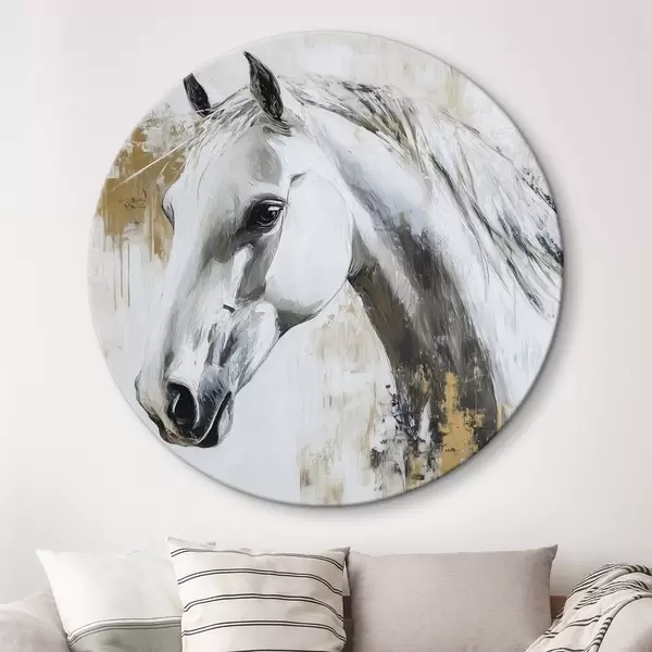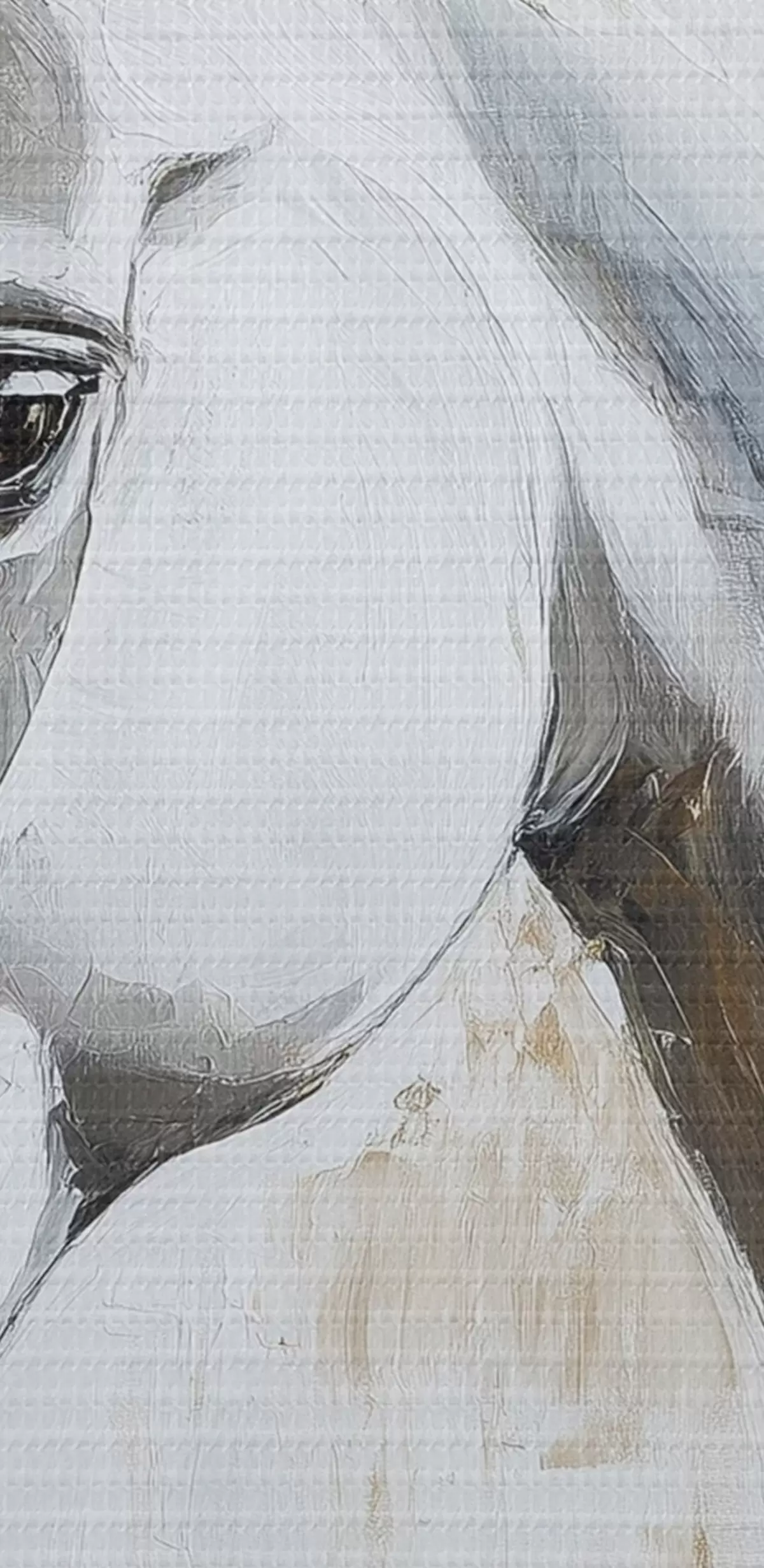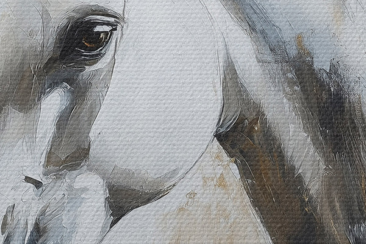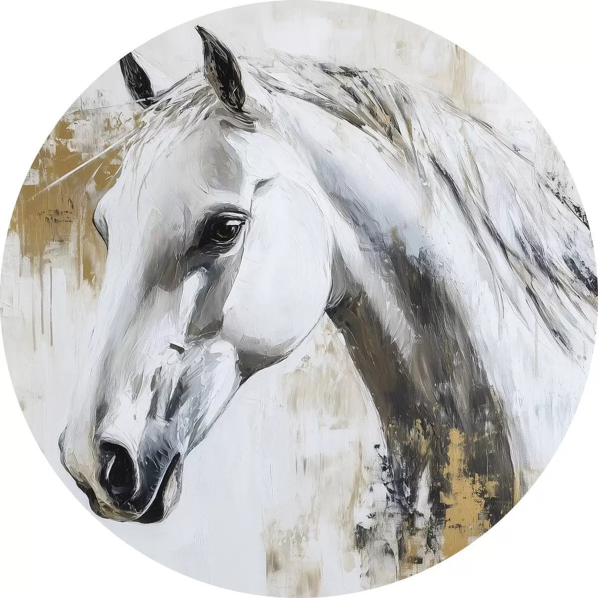 Pilt Valge hobune, õlistiilis joonistus, loomad, erksad pintslitõmbed Nr r43497