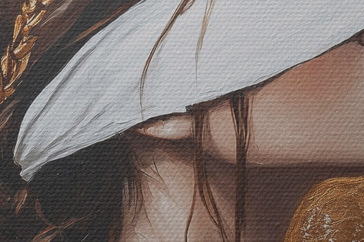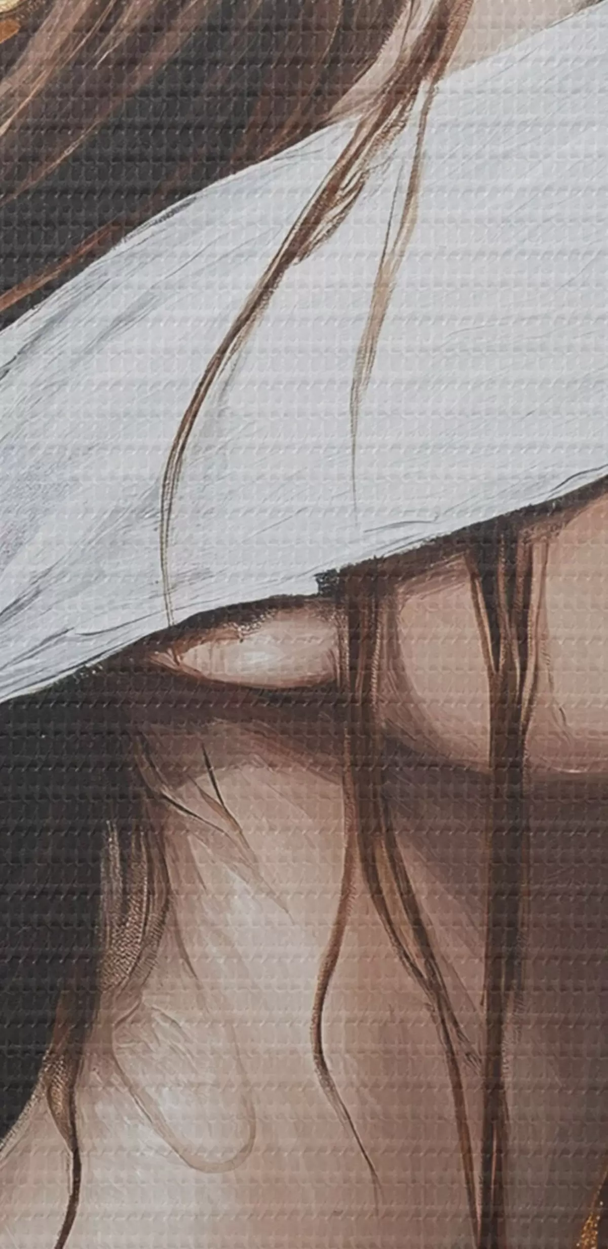 Selle lõuendi peenike niidipunus meenutab professionaalse kunstniku lõuendi pinda.