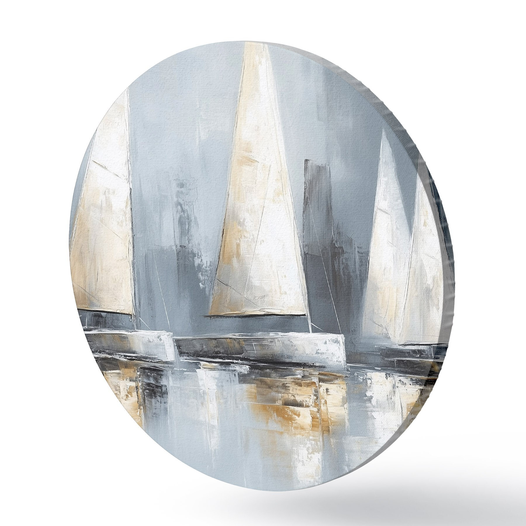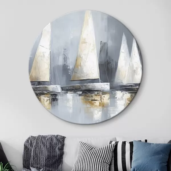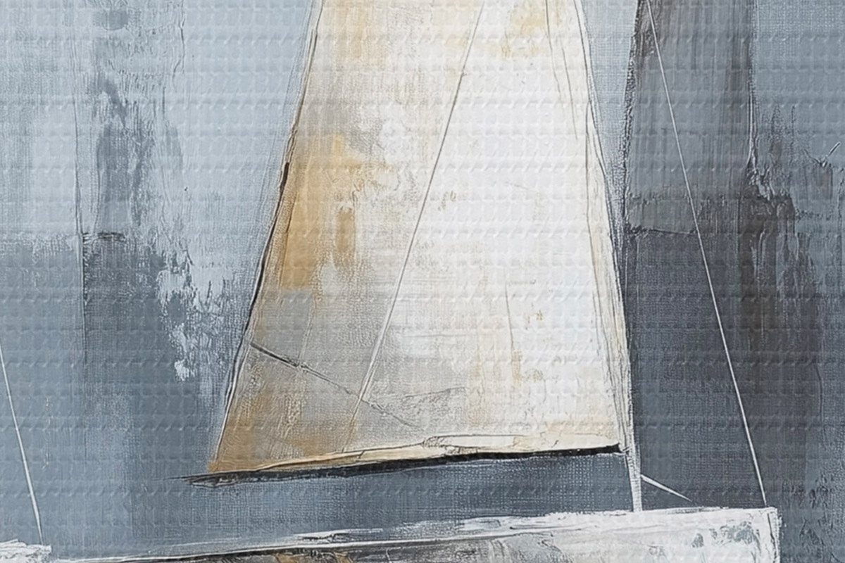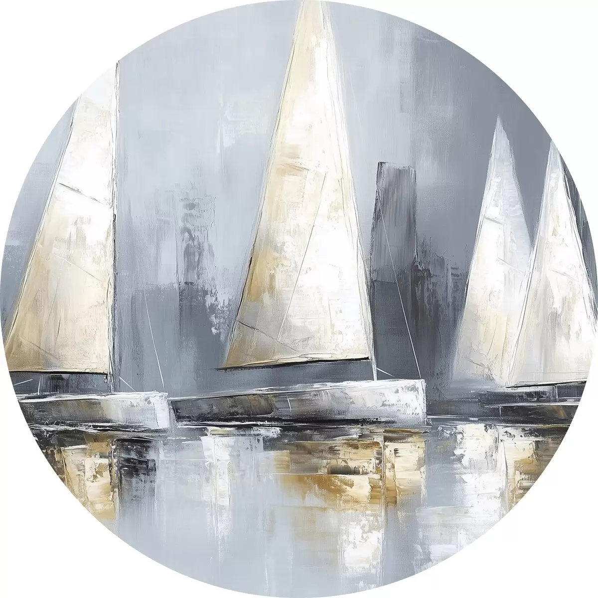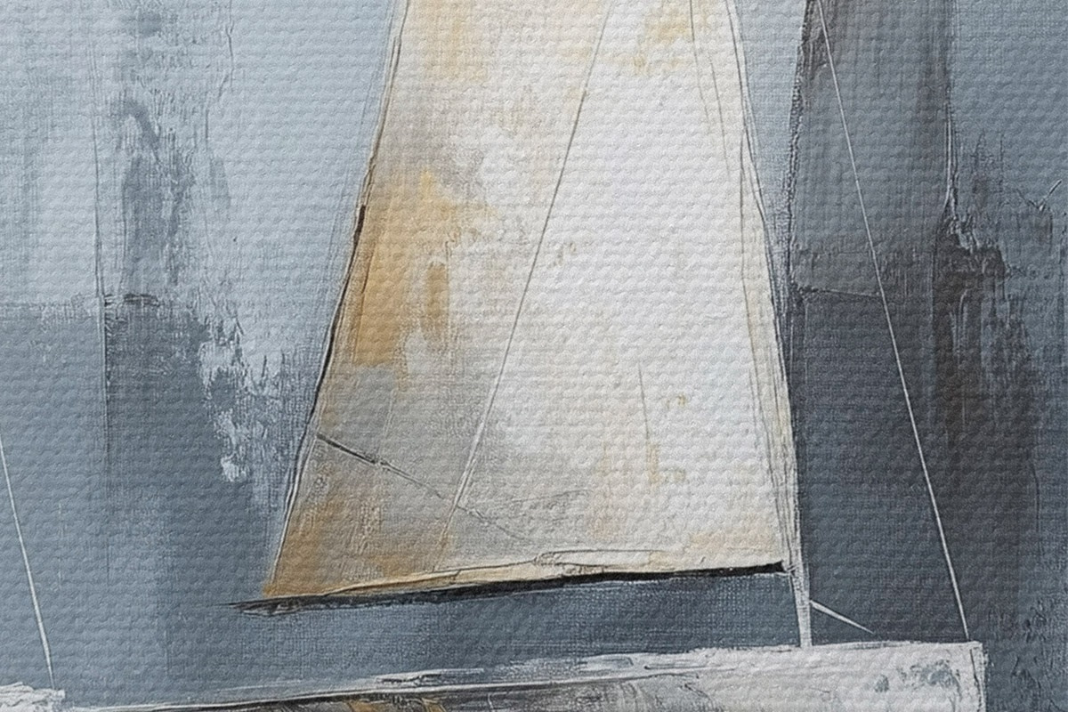 Pilt Purjekad koos peegeldustega vees, õli stiilis joonistus, hallid värvid Nr r43506