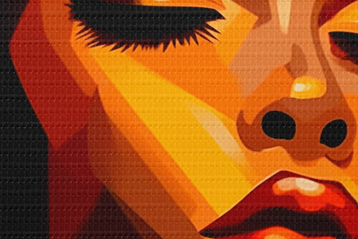 Selle lõuendi peenike niidipunus meenutab professionaalse kunstniku lõuendi pinda.